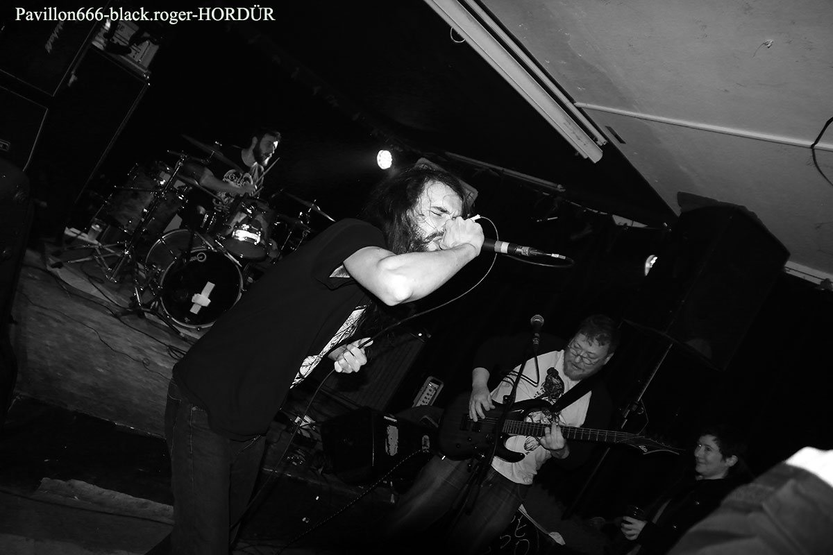 Les trois lascars d’HORDÜR profitaient de l’occasion pour nous présenter leur nouveau bébé, un vinyle nommé « hubris » paru en Novembre dernier et comportant 20 petits « brûlots » courts mais intenses.