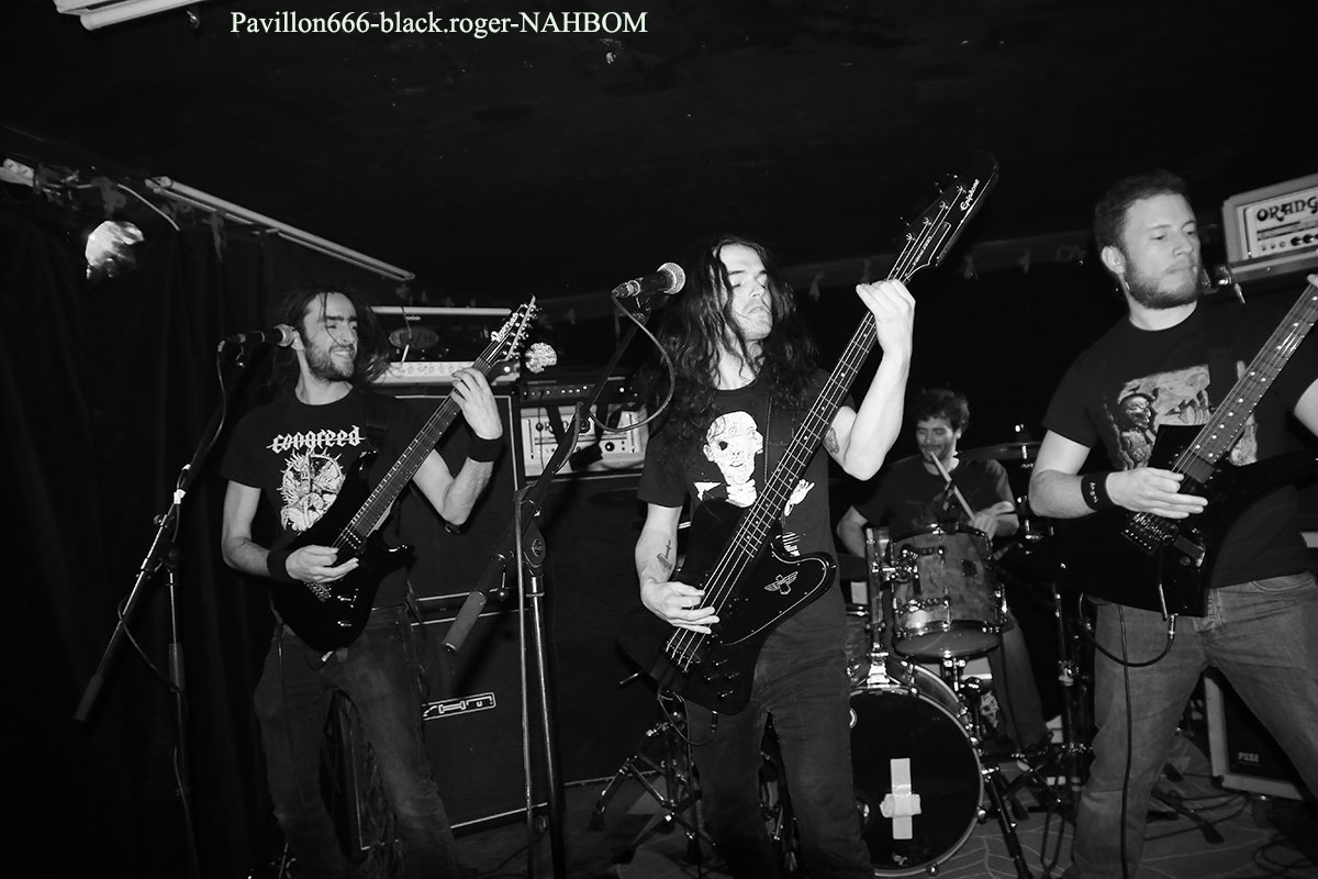 Ce soir le trio se lâche devant un public en nombre et ce trio se mêle à nous sans vergogne aucune afin de nous jeter à la figure son grind-death à toute épreuve rempli de jeux de mots à la saveur piquante. Comme leurs envois gratte et batterie avec un chanteur dont la voix me fais penser à celle du frontman de Blockheads. Et dans l’ombre Napalm Death guide ce grind bourrin, mais subtil, sans foi ni loi mis à nu par des anciens membres de gloires du grind lyonnais.