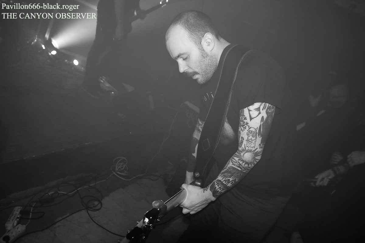 Pour la suite, les Slovènes de THE CANYON OBSERVER vont nous offrir un set remarquable et remarqué. Depuis une scène aux lights enfumés, le groupe va nous coller littéralement contre un certain mur du son, post-quelque-chose, sludge si vous voulez. Chanteur possédé dans cette ambiance post-apocalyptique, musiciens exacerbés par une certaine dissonance, bref on se serait cru à certains moments sur le tarmac de l’aéroport de Roissy.