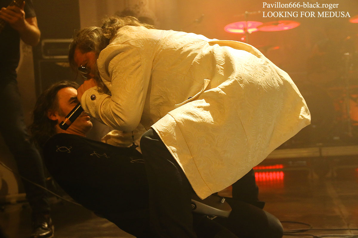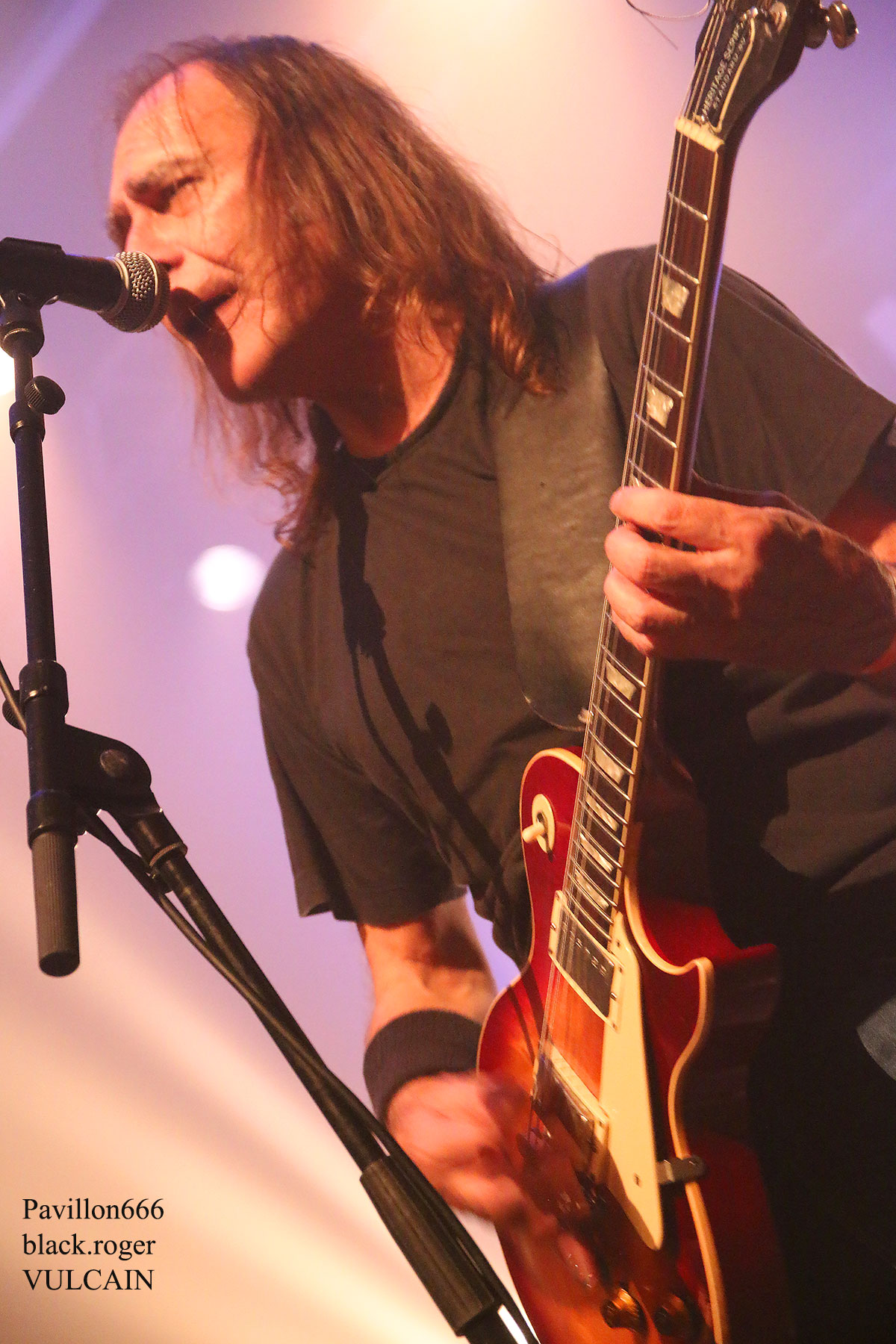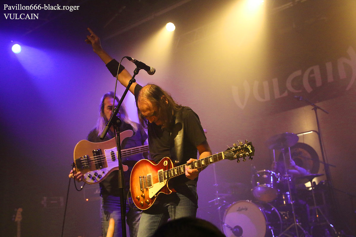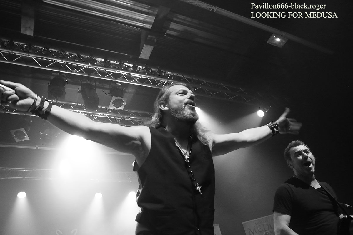 ARCHANGE sera le groupe idéal pour ouvrir cette soirée avec son hard-rock mélodique bien dans ses « tiags » et très démonstratif en live. Archange n’est pas un groupe de jeunes débutants mais un groupe de musiciens ayant opéré ou faisant partie d’autres formations du genre. Archange, c’est donc Dan Pallas (hard-rock-FM), Laurent Raabatel (Archangel, Pride), Paco Peiro (Borsalino, Skyline), Markus Fortunato (MZ, Oblivion) et David Amore (Temple, Nightmare, Oblivion). Cette formation a déjà enregistré un premier opus intitulé « flashback » paru en 2017 et prépare actuellement un nouvel album dont un premier single « back in time » nous a été offert fin septembre dernier en primeur. Tout ça pour vous dire qu’en live Archange n’a de leçon à recevoir de personne et nous propose 45 minutes de rock mélodique à la Dokken ou encore à la Ratt par exemple. Archange nous a convaincu encore une fois ce soir, ce fus bon et même très bon, groupe à voir et revoir sans modération. Set-list en photo. Le rock de LOOKING FOR MEDUSA va ensuite en surprendre plus d’un, mais dans le bon sens du terme rassurez-vous. Looking For Medusa n’est pas non plus un groupe de jeunes loups sortis récemment de leur tanière, mais il est formé avec des musiciens ayant roulé leur hard-rock depuis les années 90 dans différents combos. Ce groupe en tant que tel existe depuis 2011 et possède un premier EP (into my eyes), mais surtout un nouvel album arrivé récemment dans les bacs et intitulé « de profundis ». Mais alors que nous propose les Clermontois ? Et bien du heavy-rock déjanté voulant sortir des clichés du genre, et ce soir il vous baptisera, si ce n’est déjà fait, avec une nouvelle composition intitulée « psaume666 », tout un programme. Mais hormis des compositions bien originales, le groupe est intenable sur scène où les musiciens s’envoient en l’air dans tous les sens du terme. Du coup on ne voit pas le temps passer et il est vite l’heure de fin de set qui se fera avec une reprise de AC/DC, « thunderstruck », une reprise musclée bien comme il faut qui mettra tout le monde d’accord. Merci Looking For Medusa, nous avons été médusés (sic) par votre show. Set-list en photo. Et puis, et puis, VULCAIN arrive sur scène et peine à démarrer son set car des ennuis techniques se font jour, le trio plaisante et rigole, nous aussi. Tout s’arrange enfin et à l’aide d’un nouveau titre « vinyle » la machine de guerre hard-rock frenchie qui n’a pas pris une ride se lance enfin. VULCAIN a repris la route du rock afin de nous présenter donc son 13ème album intitulé « vinyle » hommage à la génération 80’s qui s’éclatait à l’aide de ce support audio Cqfd. Le poids des ans (groupe formé en 1981) ne semble pas avoir de prise sur ce trio composé des frères Puzio (Daniel, chant/guitare et Vincent basse), et aux fûts Marc Varez. La route du rock pour ce groupe très tôt surnommé « Motörhead français » n’a pas été de tout repos depuis plus de trente ans, mais le rock n’roll a pris le dessus. Du coup Vulcain a repris du poil de la bête depuis quelque temps et nous démontre qu’il tient toujours le haut de l’affiche dans le style, alors au menu de ce soir à Rillieux le trio nous offre 18 titres qui s’enchaînent non-stop, et outre les nouveaux morceaux comme « vinyle », « backline music », « héros », « contrôle » et « Motör (hommage à lemmy) », des classiques arrivent sans crier gare comme par exemple « l’enfer », ‘rock n’roll secours », « blueberry blues » ou encore « le soviet suprême ». Mais arrêtez les gars, il en manque un, et pas des moindres, alors avec sur scène tous les musiciens de la soirée tout le monde entame en chœur « la digue du cul » évidemment, que serait un concert de Vulcain sans cette ode paillarde. Set-list en photo. Vulcain nous a donc « gâtés » ce soir Ö Totem de Rillieux, longue vie à Vulcain ! Merci bien sûr à Looking for Medusa et a Archange pour leurs sets bien enlevés. Merci à Looking For Medusa pour l’accréditation accordée à Pavillon666 et bien entendu, merci à la MJC pour l’accueil et la technique. |