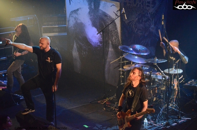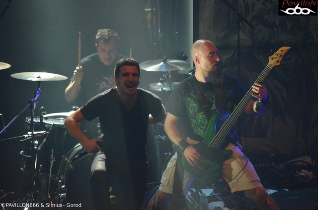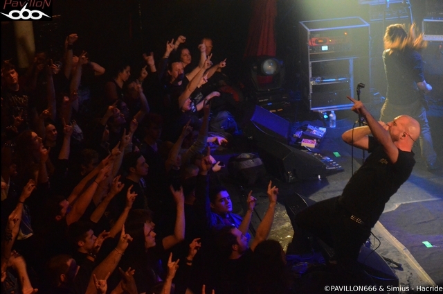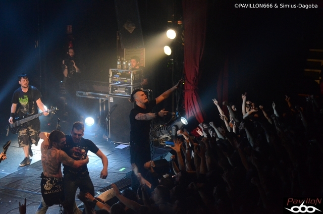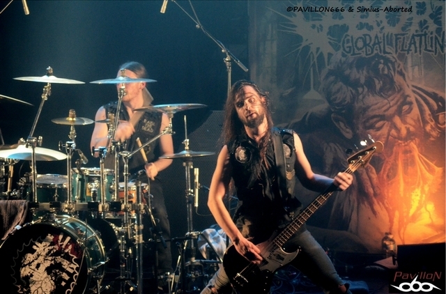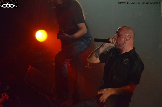 Hacride. Revenant il y a peu de la scène Michelet à Nantes, le groupe avait su démontrer une réelle capacité d'adaptation aux vu de nombreux problèmes techniques. En d'autres termes, les poitevins savent ce qu'ils font et le font bien. Et le concert de ce soir ne fait que confirmer mes dires. Luiss (le chanteur), tel maestro devant son orchestre, mène le public avec entrain et ferveur. Les premiers circle pite commencent à apparaître, suivi de quelques slam. Le public s'échauffe mais on est encore loin d'un véritable pit en furie. Pourtant on peut dire que la prestation est de qualité, mais relativement courte il faut bien l'admettre ( 4 sets présents obligent). Le groupe sait varier les plaisir, alternant entre parties mélodiques et rythmique, les gars d'Hacride montre qu'ils prennent véritablement leurs pieds et partagent avec entrain leur ressenti avec la foule. Il paraît que les premières parties ont toujours du mal à chauffer la salle... Il paraît. En tout cas, Hacride a une fois encore relevé le défi (avec brio il faut bien l'avouer) et ne s'est en rien découragé devant une affiche aussi impressionnante. Le premier set se termine. 19H45. A peine le temps d'aller prendre une cigarette, de changer mon objectif que le groupe Bordelais, Gorod, fait son entrée sur Scène. Explosion d'énergie. Le groupe de death technique Aquitain se déchaîne littéralement sur la scène, reprenant des titres de leur dernière sortie : « Axe of god », « Birds of Sulphur »... Autant de titres salués avec entrain par un public toujours aussi chaud. Mais voilà, la fougue de Nutz (chanteur), les riffs démentiels de Nicolas et Matthieu (guitares) ne sauront monter d'un cran la température au sein du pit. Une performance et prestation scénique digne des Bordelais, mêlant bonne humeur (comment oublier le grand sourire de Barby) et la rage de jouer. Attention, bien loin de moi l'idée de dire qu'une telle prestation était décevante, loin de là. Gorod a su présenter un set court mais de qualité. Disons tout simplement qu'en comparaison de la suite, la foule était à l'instant bien calme comparée à la furie qu'elle laissera paraître. Aborted apparaît sur les coups 21h45. Une attente très écourtée entre les deux sets, dans la sueur des deux précédents groupes et la bière. Le merchandising de Gorod s'en donne à cœur joie. L'aube Belge se présente enfin à nous, dans un tonnerres de riffs puissants, dans le tumultes d'une batterie écrasante, le tout porté par la voix délétère de Sven. Je commence à penser qu'entre Hacride et Aborted, les chanteurs chauves sont réellement à l'honneur ce soir. Quand ce dernier prend son micro, c'est la tempête qui fait rage et les pits s'en donne à cœur joie. Une violence qui contraste fortement avec l'attitude de ce même groupe : amical et chaleureux, Sven en vient jusqu'à tendre la main à quelques slameurs (de plus en plus fréquent), les invitant à monter sur scène, partager quelques headbangues en compagnie du groupe. Dès lors s'ensuit un concours de slam sans précédent, ne déconcentrant en rien Sven et les autres musiciens présent sur scène. Vrilles, saltos avant (petite dédicace à cette jeune demoiselle avec un chapeau « stitch ») … Le public semble prit d'une frénésie inspirée de la joyeuse énergie propre à ce groupe qu'est Aborted, et vint prendre place à coté du groupe sur un ultime titre. Imaginez : 50 chevelus bougeant de la tête sur une scène illuminée, rythmé par les pulsions nerveuses d'un Sven meneur de troupe. Un dernier au revoir, il faut les délaisser, avec regret il faut bien l'avouer, pour laisser place au groupe tant attendu : Dagoba. Reste à savoir si les marseillais seront à la hauteur de leur réputation, défi d'autant plus dur quand on voit la prestation d'Aborted... Ambiance sombre, lourde. Un backdrop de la taille de la scène en arrière fond présente l'artwork du dernier album « Post Mortem Nihilest ». Pas de présentation superflue, quelques notes lâchées dans le vide, en suspens telle une invitation et voilà l'arrivée de Franky et Shawter, acclamé par la foule. Les gars de Dagoba ne font pas dans la dentelle : c'est « I reptile » qui vient nous cueillir d'entrée de jeu et nous donner le ton. On a tout de suite compris que les marseillais ont bel et bien pris leurs marques sur la scène du bataclan, devenant par ailleurs très rapidement un véritable champ de bataille. Il est clair que les marseillais semblent être revenus en pleine forme de leur virée aux Etats-Unis. Shawter est toujours le même meneur qu'à l'accoutumé, et pour cause à peine « Black Smocker » commence, le 4ème titre, qu'un premier wall of death sur l'ordre de Shawter se met en place. Oui, un premier, car comme à l'accoutumé Dagoba aime chauffé la foule. Il n'est plus rare de voir, comme c'est le cas ce soir, des slameurs se chevauchant, voler du haut de la scène, et les WOD se multiplier sous l'influence et le charisme de Shawter. Sans oublier bien sûr les fameuses prestations scénique de Franky qui, non content de jouer « simplement » de la batterie, s'amuse régulièrement à jongler avec ses baguettes comme à son habitude et le sourire au lèvre. Le ton change, plus aérien, moins lourd, « Yes We die » prend son envol sur une foule enflammée qui ne tient plus en place. Le concert devient plus qu'un concert, c'est une assemblée réuni autour de ce groupe Français emblématique. En clair un groupe qui n'a rien perdu de sa superbe, et qui s'est par ailleurs améliorer d'un point de vue scénique de mon humble avis. Semblerait que leur dernier virée aux Etats-Unis et leurs dernières scènes leur aient permis d'acquérir une certaine assurance. Je pense notamment à Z qui, malgré sa ressente intégration au sein du groupe, a complètement trouvé sa place au sein du groupe mais également sur scène. |