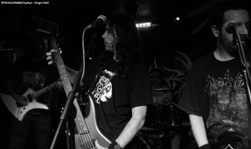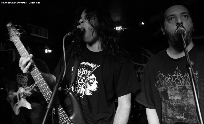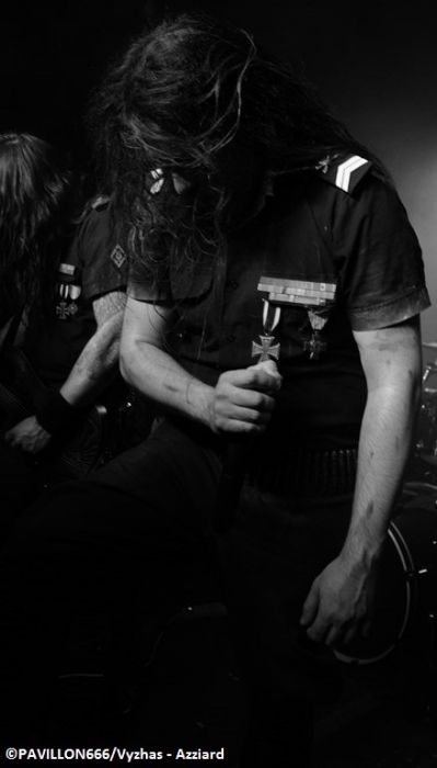 Ne pouvant arriver plus tôt, je manque le début du set d’Ishtar. Les parisiens existent depuis 4 ans et ont sorti en juillet dernier leur EP « From the Gates » plutôt convaincant. Leur musique est un savant mélange d’un black tranchant et rapide avec un penchant Death pour la lourdeur des riffs. Les bougres se démènent plutôt bien sur scène avec un son plus que correct (peut-être un petit bémol au niveau des guitares un trop criardes dans le mix). Les musiciens sont assez statiques, seul le hurleur L tire son épingle du jeu avec un charisme plus prononcé que celui de ses compères. Ishtar aura livré une bonne prestation ce soir. Une mise en bouche bien sympathique avant de poursuivre les hostilités. Setlist : From the Gates Asperatus Beneath the Stench of Desolation On enchaîne avec Origin’Hell. Et quelle découverte ! Formé en 2001, les rennais ont déjà trois albums à leur actif. Origin’Hell est venu démontrer de quel bois il se chauffe avec un thrash/death diablement efficace. Les musiciens sont incroyablement bons, un batteur véloce à la frappe puissante, des riffs incisifs et catchy et des échanges de soli endiablés entre les deux guitaristes. A tout cela, s’ajoutent les growls et vocaux surpuissants des trois vocalistes. Sur une scène, dans une salle plus grande et avec plus de personnes, les bretons auraient pu faire remuer furieusement les foules et délivrer une performance qui n’aurait pas eu à rougir face aux grands du thrash/death. A noter cette reprise sur-vitaminée de « Wolves » de Marduk. Une formation à revoir très prochainement dans de meilleures conditions ! Setlist : Overfull Eternal Resumption Misanthropia Ready To Fight Funeral Fetishism Thirst For Blasphemy Wolves (Marduk Cover) Blasphemous Legion Dust Of Civilization The Path Of The Lord Troisième groupe de la soirée place à Domination. Existants depuis 2012, les lorientais pratiquent un black mid-tempo assez atmosphérique. La prestation de Domination était loin d’être mauvaise, mais ne m’a pas vraiment convaincue, la faute à des musiciens trop « endormis », seul le chanteur essayait tant bien que mal d’imposer une ambiance, avec une gestuelle un peu maladroite, comme si ce dernier tentait d’imiter des vocalistes du même acabit qu’un Vestal (Merrimack, Lugnasad, Anus Mundi), mais en vain. Malgré un black de bonne facture aux accents dépressifs, Domination ne m’a pas transporté, restant trop dans le conventionnel. Un gain de maturité artistique et de personnalité et je suis sûr que ce groupe peut nous proposer quelque chose de plus intéressant la prochaine fois. Setlist : Mary (Should Have Had An Abortion) Euthanasie Born To Be A Slave Hate Give Up The White Way To The End On passe enfin aux choses sérieuses puisque la première tête d’affiche débarque sur scène : Azziard ! Leur premier album « 1916 » ne m’avait pas du tout marqué, tout comme leur prestation au Paris Poppins en compagnie de Lugnasad, sûrement à cause du son approximatif et de l’exiguïté de la salle. Leur dernier album « Vésanie » a reçu un excellent accueil auprès des critiques. Et c’est largement mérité car ce disque est une tuerie de black brutal rappelant l’horreur indescriptible des tranchées de 1914-1918. Azziard met à l’honneur leur dernier méfait en jouant pas moins de six morceaux de « Vésanie », et 2 titres de « 1916 ». C’est tout en uniformes et en corpse-paints que les parisiens investissent la scène et transforment un Klub quasiment rempli en véritable champ de bataille, jonché de pogos et de headbangs féroces ! Le charismatique vocaliste ASA et ses sbires assènent une raclée monumentale à coups de riffs mitraillettes ultra incisifs et de blasts infernaux. La brutalité et l’aspect guerrier de la prestation montrent l’attachement d’Azziard à l'agressivité des shows de Dark Funeral et Marduk. D’ailleurs après 45 minutes de déferlement d’obus sonores, les blackeux « Poilus » parisiens achèvent l’assistance avec une reprise dantesque d’ « Unsilent Storms in the North Abyss » d’Immortal. On peut reprocher à Azziard d’avoir eu un son parfois brouillon sur les passages rapides, mais avec une performance aussi apocalyptique (dans le bon sens du terme), ce petit désagrément n’est au final qu’un détail de l’Histoire ! Campagne victorieuse pour Azziard ce soir au Klub, il ne reste plus qu’à remporter la guerre au Hellfest ! Pas de quartiers ! Setlist : Allégorie Disjonction Rébellion De Lumière, d’Obscurité Sur La Toile Ekphrasis Défiguré Dans Ma Chair Unsilent Storms in the North Abyss (Immortal cover) Il est maintenant temps de conclure cette soirée en beauté avec Bliss Of Flesh. Les calaisiens ont frappé fort en cette fin d’année 2013 avec leur deuxième opus « Beati Pauperes Spiritu », un condensé de black/death survolté made in Drudenhaus Studios, un must pour les amateurs de Behemoth, Belphegor ou encore Arkhon Infaustus ! C’est devant une salle très peu remplie que Bliss Of Flesh défend les couleurs de son dernier méfait. « Les absents ont toujours torts » ce n’est pas moi qui le dis, mais pour le coup les personnes ayant désertés le Klub après Azziard, ne savent pas ce qu’elles ont raté. Après un premier morceau un peu long et trop lent pour un début de set, Bliss Of Flesh sort l’artillerie lourde, et rase tout sur son passage à grands coups de riffs lourds et efficaces dignes de la scène polonaise, de mélodies dissonantes et de soli virtuoses. L’impressionnant growler Necurat est très en voix et très communicatif, son timbre ultra guttural et ses parties plus criardes black transpercent ce mur de guitares acérées et de blasts surpuissants. Les nordistes nous servent les meilleurs morceaux de ce « Beati Pauperes Spiritu » (« AMEN », « Black Procession », « Disciples », etc.) avec une interprétation sans faille et très propre (l