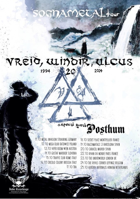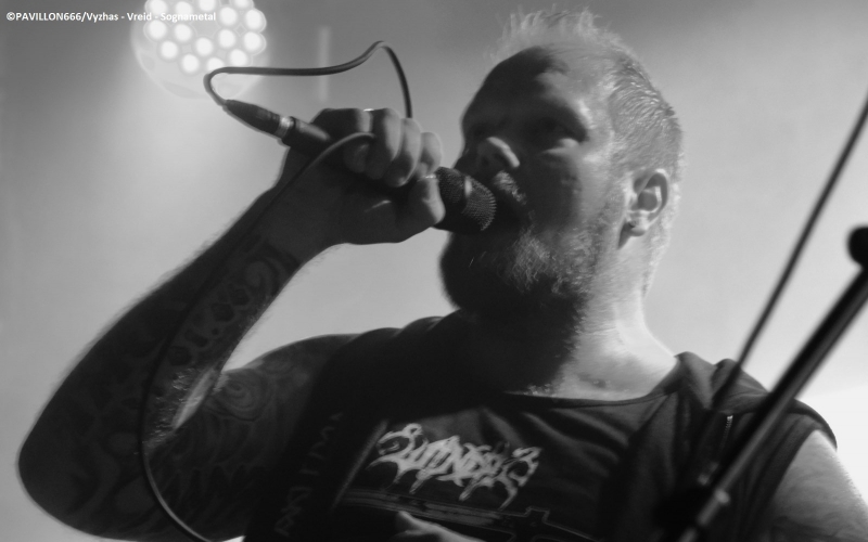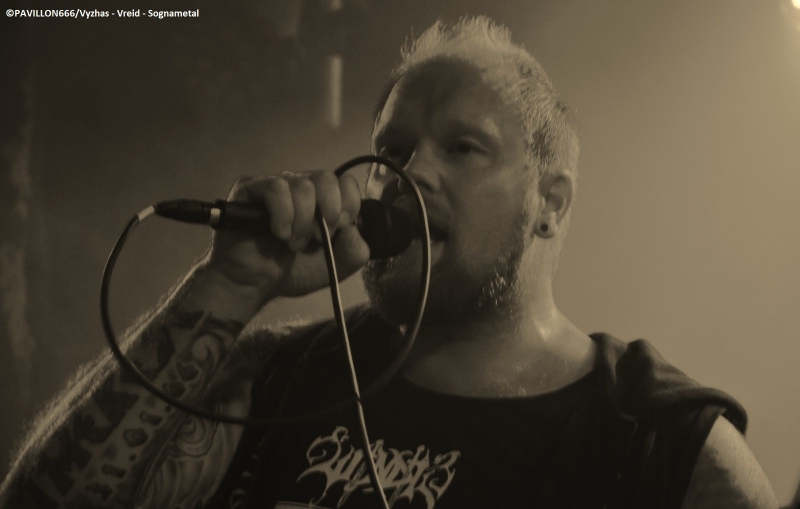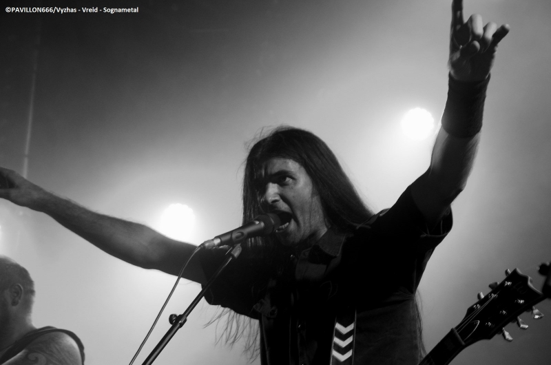Mais avant cela, leurs compatriotes de Posthum ont la lourde charge d'ouvrir les hostilités de cette soirée. Fort de trois albums, le quartet officie dans un black traditionnel, aux accents rock’n’roll avec un son résolument moderne. Le combo a décidé d’axer sa setlist sur son dernier effort « The Black Northern Ritual » sorti le 13 octobre dernier. Si le public semble avoir apprécié la prestation des scandinaves (sans effusion de joie non plus), la musique de Posthum m’a laissé quelque peu de marbre. Répétitif, des vocaux faiblards, un rythme (trop) lent, leur black metal, bien que parfaitement exécuté, m’a vite ennuyé et ce malgré le son limpide et la bonne humeur communicative des membres. L’aspect statique de leur performance les a également beaucoup desservis. Dommage ! Le public se fait plus dense, les norvégiens de Vreid sont attendus de pied ferme. Soirée hommage à Windir donc, puisque la setlist fait la part belle aux morceaux de l’œuvre de feu Valfar. La formation débarque avec pas moins de sept musiciens sur scène (trois guitares, basse, batterie, clavier et chant), et ouvre le bal avec cinq morceaux piochant dans le riche répertoire de Windir ! L’hystérie du public est phénoménale : les headbangs endiablés, les pogos féroces (« on se croirait un à un concert de hardcore ! » s’exclame un spectateur surpris de la violence de la foule) et les mélodies entonnées comme un seul homme, l’assistance est dans une véritable transe ! Vreid a vraiment mis les petits plats dans les grands, et délivre 14 morceaux pendant un show d’1h20, servi par un son puissant et sans accroc, permettant à chacun des instruments d’être identifiables ! Les scandinaves sont accompagnés pour l’occasion du très imposant Vegard Bakken. La montagne de muscles est venue pousser la chansonnette black de sa voix criarde sur les titres de son frère. Le vocaliste et guitariste Sture est en très grande forme ce soir : l’alternance chant black/chant clair est d’une justesse implacable. Vreid ne fait pas l’impasse sur sa propre discographie et joue au moins un titre de chacun de ses albums (cinq morceaux au total). Même le projet black symphonique Ulcus n'est pas oublié, puisque deux morceaux de l’unique album « Cherish The Obscure » (2000) sont de la partie ce soir ! (pour rappel Ulcus est le premier groupe des musiciens de Vreid, avant que ces derniers ne rejoignent Windir). Même si le public semble avoir été réceptif aux titres de Vreid et Ulcus, ceux-ci n’ont pas eu le même impact et le déchaînement produit par les reprises de Windir. L’excitation reprend donc de plus belle avec à nouveau des titres de Valfar comme le légendaire « Svartesmeden og Lundamyrstrollet » aux lignes mélodiques ensorcelantes. Le public est aux anges, mais il est maintenant temps pour les norvégiens de tirer leur révérence sur le très black n’roll ultra accrocheur de « Pitch Black » et sur le monument « Journey To the End », avec un public chantant à gorge déployée ses mélodies épiques. Après un set intense, les nombreux metalheads sont sur les rotules, affichant un sourire béat et des étoiles plein les yeux ! N’étant pas un grand amateur de Windir et encore moins de Vreid, j’ai tout de même énormément apprécié cette prestation, même si je ne serai pas forcément aussi dithyrambique que les fans purs et durs quant à la musique en elle-même des deux formations ; question de goût tout simplement. Un grand merci donc au Divan du Monde et à Garmonbozia pour cette superbe soirée de black viking norvégien ! Setlist Vreid : Sognametal - Byrjing (Windir song) - Arntor, Ein Windir (Windir cover) - On the Mountain of Goats (Windir cover) - Dance of Mortal Lust (Windir cover) - Det som var Haukareid (Windir cover) - Helvete - Raped by Light - Eldast, utan å gro - Under isen - As We Passed Away (Ulcus cover) - The Profound Power (Ulcus cover) - Krigaren si gravferd (Windir cover) - Svartesmeden og Lundamyrstrollet (Windir cover) - Pitch Black - Journey to the End (Windir cover) |