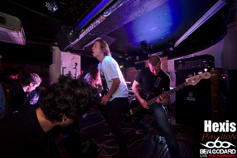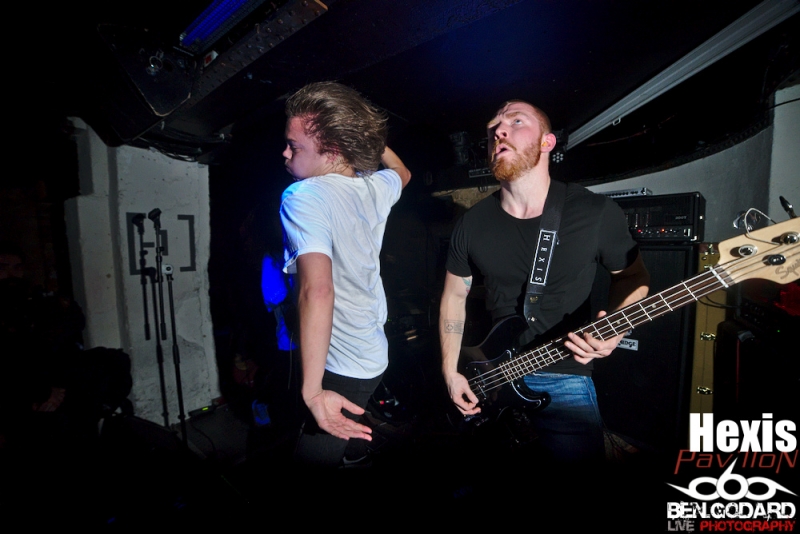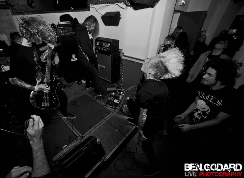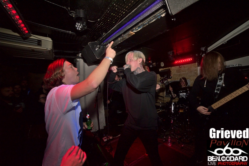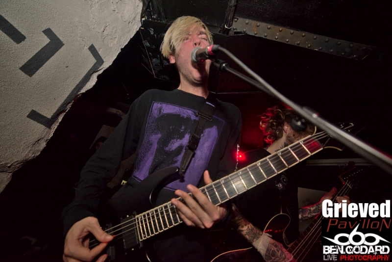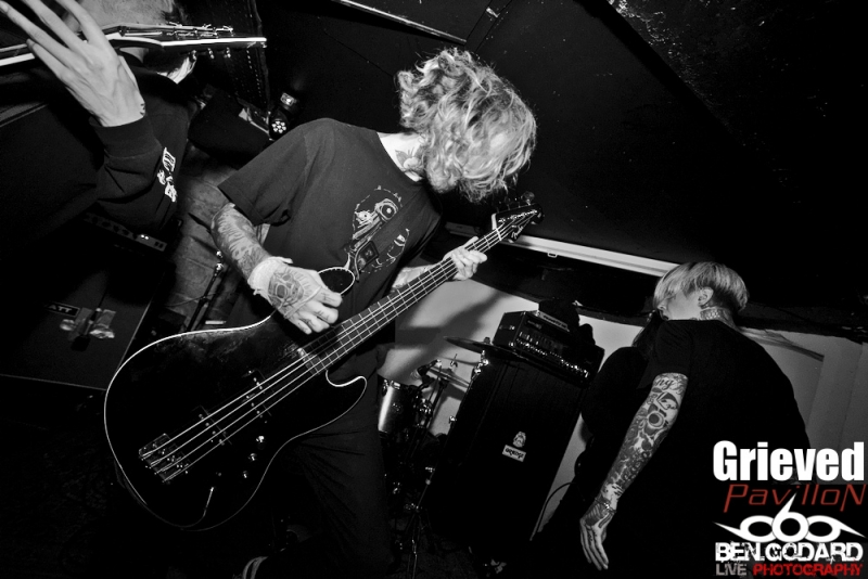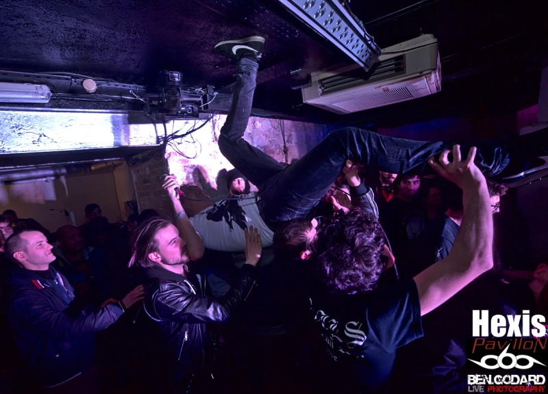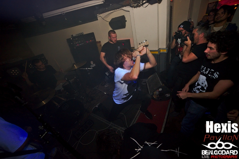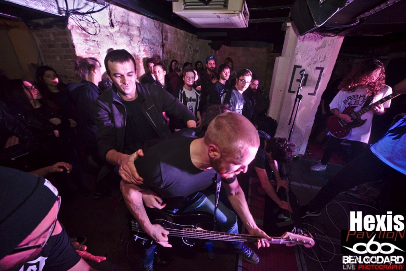 L’affiche du soir est composée de Cepheide, groupe de black français, de Grieved, venant de Suède pour montrer leur maitrise du blackened hardcore. Enfin c’est Hexis, aussi venant du nord, plus particulièrement du Danemark. Groupe là aussi de black. Je ne connais aucun groupe, mais j’ai pu découvrir succintement Grieved sur le net avant ce concert, je pars donc confiant . Ce soir ce sera dans la plus « grande » salle du Klub que ce tiendra le concert. Les metalleux sont réunis en petit nombre mais, comme à leur habitude, dans une ambiance conviviale. C’est donc Cepheide, jeune groupe français formé en 2013 qui lance le show. Lumières rouges, basse à 5 cordes, guitariste aussi chanteur (hurleur) et batteur aguerri, voilà comment définir à première vu ce trio. Leur black sonne assez old-school avec des titres assez longs. La voix criée par dessus et assez linéaire manque un peu de tranchant qui pourrait donner plus de punch. Le batteur semble vraiment assurer même si mon expertise sur la question et limitée. Le public reste tranquille et il vrai que le set de Cepheide sonne un peu stoner. Second groupe à passer, les suédois de Grieved. Style différent, on touche plus un hardcore très dark. Même si le son est différent, l’ambiance noire me fait penser à un Cowards. Le chanteur blondinet hurle tout ce qu’il peut dans son micro, sans oublier de venir provoquer le public, qui répond du tac au tac. Du coup on a très vite des pogos qui se mettent en place. Le chanteur d’Hexis fera un featuring, ou plutot un « sing along », sur l’un des titres. C’est toujours sympa de voir des groupes qui jouent le jeu en se donnant à fond même dans de petites salles. Malheureusement le set se termine assez vite et j’aurai voulu en prendre plus dans les tympans. Hexis se met en place sans que je ne sache vraiment ce à quoi cela va sonner. Stroboscope à fond, ça part direct. Les danois ne font pas de concession. C’est beaucoup plus black que Grieved, et ça bouge énormément. On peut sentir un légère influence hardcore sur quelques titres. D’ailleurs le guitariste porte un t-shirt Broken Teeth. Les intros génèrent souvent une ambiance lourde avant que la la charge ne soit sonnée. Le combat devient féroce car en face le public est prêt à découdre. Le Klub se transforme en champs de bataille dans lequel s’affrontent artistes et fans. Que d’énergie déployée de part et d’autre!. Bassiste et guitariste viendront se mêler à la foule, tandis que le chanteur s’amusera en slamant dès les premiers titres joués. Franchement, j’ai pris une baffe ! Je ne sais pas si c’est le fait que ce concert aie eu lieu dans une petite salle mais c’était objectivement énorme. Un départ mou pour Cepheide, mais à suivre pour le futur, Grived et Hexis ont su emballer le public qui le lui a bien rendu. Un merci à Pavillon et à Ludovic d'Avalanche Prod mais aussi à Adrian pour son sympathique accueil et le pass’ photo. |