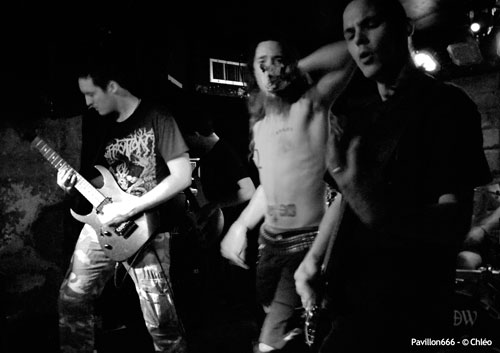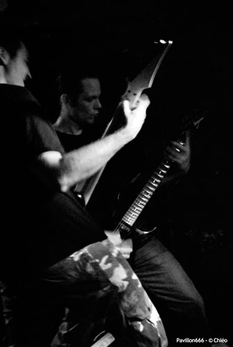 Arrive enfin la tête d’affiche tant attendue depuis le début de la soirée. Les cinq sanguinaires que composent Aäzylium nous ont préparés du lourd. Proche du Brutal Death mais sans vraiment tomber dedans, le combo nous offre de quoi voyager dans un univers proche de la démence et de la brutalité. Le dynamisme des compos est créé par la maitrise du son et des rythmiques. Les riffs d’Aäzghal et Romain sont parfaitement coordonnés avec les lignes de basse de Gautbill qui, pour les amateurs de Psychobolia, percevront la différence de style. Kill et sa grosse voix nous entraine dans des grawls puissants et sombres proches de la folie. Nous retrouvons Schuff très déterminé derrière les futs (la caisse claire m’en dira des nouvelles !). Durant le set, les regards s’échangent, les batailles de riffs s’enchainent, encouragés par un public visiblement séduit. Kill n’hésite pas aller à la rencontre des spectateurs, profitant que la « fosse » soit vide pour montrer qu’Aäzylium est bien présent ce soir et que si ils doivent mettre le feu quelque part c’est bel et bien au Klub que ça se passe. Un Wall of death est proposé par le chanteur, et il n’en faut pas plus pour subvenir aux besoins primitifs des pogoteurs qui attendaient le signal. Pour résumer, c’est un petit concert Death bien construit, comme on les aime, et c’est dans l’impatience de revoir Aäzylium sur les planches que ma chronique s’achève…