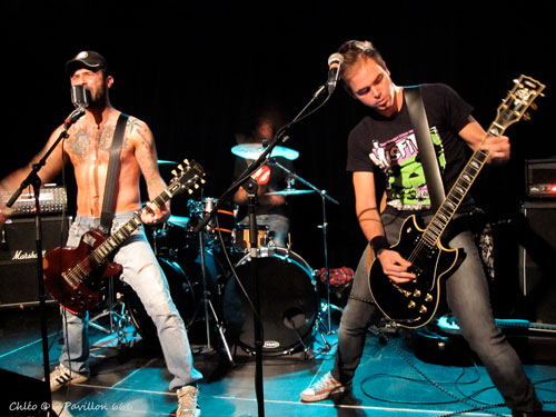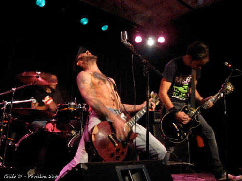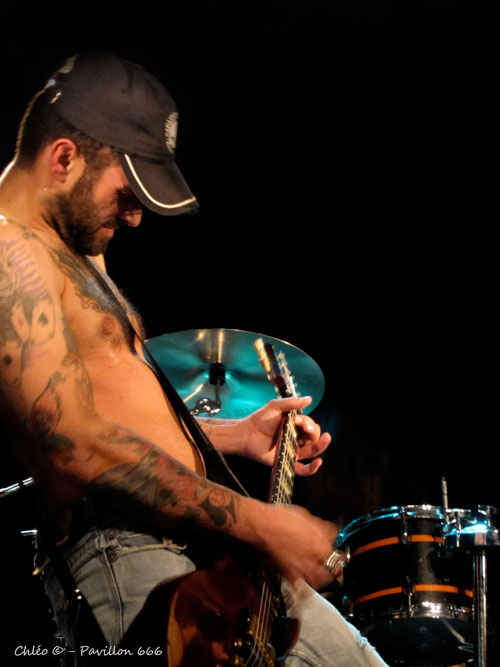 Maciste, c’est comme une Harley lancée à plein régime dans le désert texan ! Amputé d’un bassiste, cela ne les empêche pas de mettre le feu sur scène et d’en faire leur terrain de jeu durant toute l’intégralité de leur set. J’ai en face de moi un guitariste-chanteur qui semble complètement possédé. Il donne toute son énergie et ça se voit ! Tel un certain Axl Rose dans sa meilleure période, il envahit la scène avec ses riffs indisciplinés. Des bruits de couloir disent que la folie est contagieuse et j’en ai la confirmation en observant le second guitariste, qui se lance dans des riffs effréné et rebelles, qui contrastent parfaitement avec les rythmes du batteur aussi furieux (voire plus !) que ses compagnons de scène. Bref, Maciste ça déboite ! Une énergie musicale à la Nashville Pussy qui ne me laisse absolument pas indifférente. Sur les derniers morceaux, un bassiste fait son apparition, ce qui renforce encore plus cet esprit « Hard Rock Survitaminé ». Ils le disent eux-mêmes et ce n’est pas moi qui vais les contredire…
