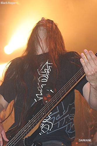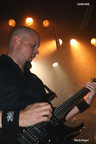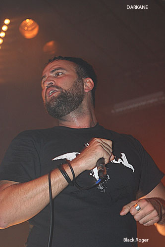 Nous arrivons maintenant au terme de ce Rampage Metal fest avec en tête d’affiche les Suédois de DARKANE pour une date unique en France actuellement. DARKANE n’est pas un nouveau venu dans la scène thrash-death, il faut le reconnaitre, après cinq albums et de nombreux concerts donnés depuis une douzaine d’années déjà. Ce que nous servent les Suédois ce soir est un mélange de thash/death brutal par moments entrecoupé de titres plus mélodiques avec samples occasionnels. Ce qui au début de l’heure qui leur est accordée, emble assez sympathique, se révèle linéaire et un peu ennuyeux au fil du set. Difficile donc pour moi d’accrocher vraiment à leur musique je vous le dit carrément et sans détour. D’ailleurs une bonne partie du public sort progressivement pendant le show, c’est un signe qui ne trompe pas bien souvent et cela semble être le cas ce soir. Alors même si un morceau un peu plus « rock n’ roll » nous est proposé pour remonter un public ne réagissant que peu à leurs compositions, ça ne le fait pas. Déception donc pour la première fois que j’assistai à un concert de DARKANE. Tout ce que je peux dire à leur encontre c’est le terme « pas mal » mais sans plus, dommage de clôturer cette soirée réussie dans l’ensemble par une prestation sans étincelle, sans flamme, sans véritable engouement.