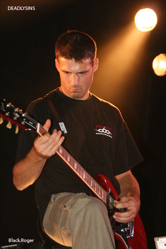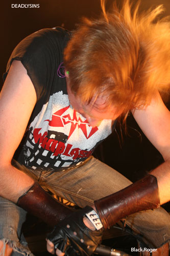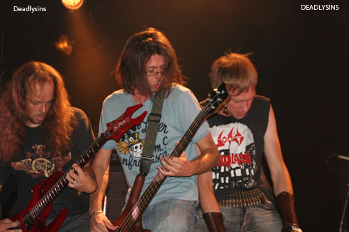 Evidemment, à 17 heures 30 lorsque les thrashers fous Lyonnais DEADLYSINS montent sur le ring (pardon sur la scène), ce n’est pas encore la foule, il est tôt et le soleil brille au dehors, vous m’avez compris. Qu’à cela ne tienne Matt et ses sbires ne sont pas venus là pour rigoler mais pour nous cracher à la figure leur thrash old-school efficace et puissant. Devant nous donc nous avons un frontman déchaîné, deux guitaristes qui tranchent dans le vif du sujet, une basse énorme ce soir et un batteur qui va démolir son kit. Ca assure vraiment ce soir, il n’y a pas photo. Le son est bon, les compos aussi avec une petite reprise de Slayer dans le set, ils ont du « punch ». Personne ne s’y trompe, on se régale avec ce thrash vintage qui est toujours aussi délectable lorsqu’il est bien maitrisé comme ce fût le cas pendant cette petite demi-heure jouissive au possible.