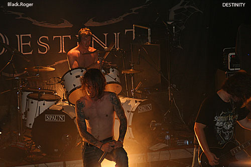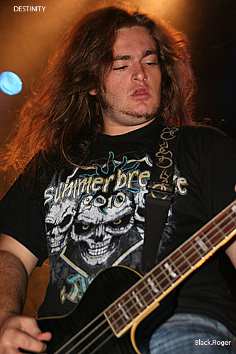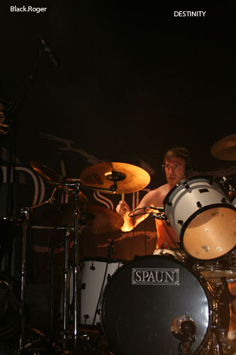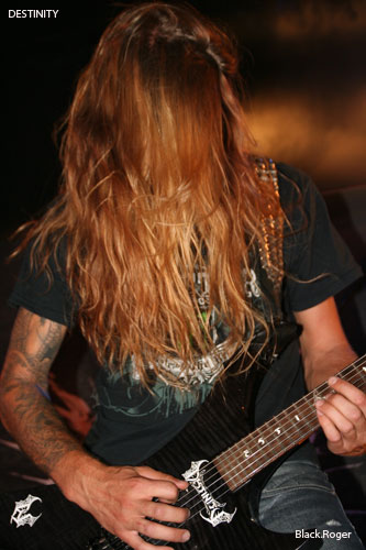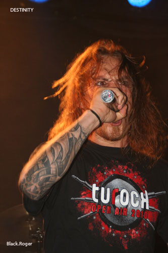 DESTINITY prends maintenant possession de la scène. Après des concerts donnés à travers toute l’Europe dont sa prestation au fameux Summer Breeze en Allemagne, le voilà de retour « à la maison » comme le dit Mick son frontman charismatique. Ce soir de nouveaux titres alternent avec de plus anciens comme le fameux « Evolution-Devolution » extrait de leur excellent album « Synthetic Existence ». Bien sûr le quintette nous propose des compositions du petit dernier opus « XI Reason To See ». DESTINITY au fil des ans a trouvé sa voie et leur set est précis, carré (comme d’hab, dirait le guitariste Zephiros), et puissant dans un registre thrash/death mélodique qui fait secouer les tignasses et se déplacer en « circle-pits ». C’est énergique et décapant de professionnalisme acquit depuis 1996 année de naissance du groupe. Et même si par moments des relents d’AMON AMARTH et HYPOCRISY s’échappent de la casserole où mijotent leurs compositions, on doit reconnaitre que leurs prestations actuelles ne supportent aucune critique négative, excellente démonstration encore ce soir, tout simplement.