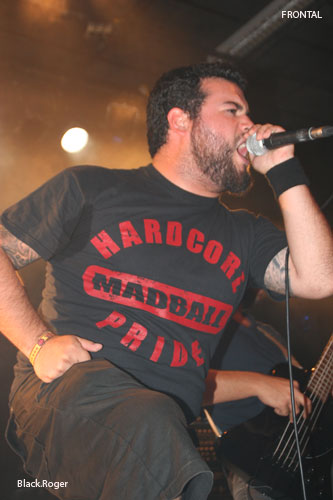 Place maintenant aux Lyonnais (encore) de FRONTAL qui ont eu l’opportunité de se produire au Wacken Open Air cet été. Avec FRONTAL, comme je le dis souvent, c’est le choc ! Diègo tient la scène comme personne avec sa voix arrachée et venimeuse. La cuisine du groupe faite de death, de thrash, de « core », et d’aventures prog est bien réussie, la sauce prend immédiatement. Conséquence, ça bouge dans la fosse enfin, comment résister aux coups de boutoirs d’un duo basse-batterie char d’assaut énorme et précis, aux guitares meurtrières et décapantes aux dérives aventureuses qui nous cisellent le cerveau sans préambule. Ceux qui connaissent la formation se régalent évidemment. Pour les autres la découverte prend des allures de « direct in your face », vous m’avez comprit. La formation est bien partie pour un avenir prometteur, c’est ce qu’il en résulte après cette démonstration de métal explosive.