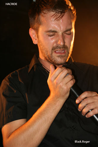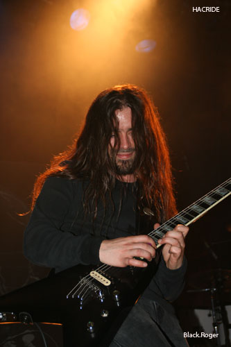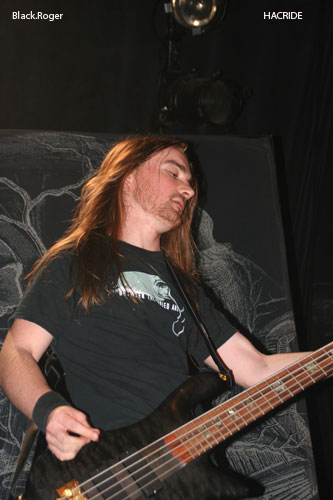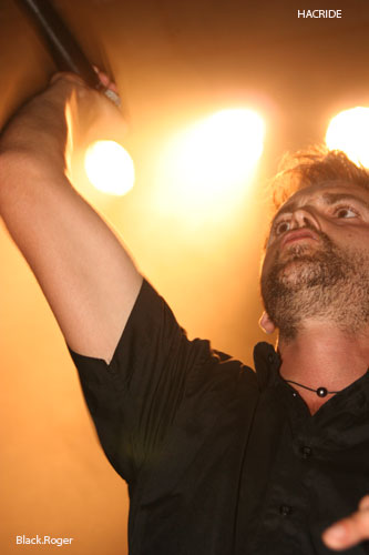 La scène est maintenant en ébullition pour installer le matériel de HACRIDE. HACRIDE qui fait figure de groupe « à part » dans le métal Français actuellement. Ici tout est question d’ambiances, de dissonances, de contretemps, de polyrythmies, de calme et de tempêtes soudaines où la formation se lâche pour nous écraser les neurones. Groupe aux allures de métal inclassable puisant ses influences dans du métal extrême, mais se déclinant en « post-core » dérangeant pour nos oreilles habituées à des rythmiques « rentre-dedans » classiques et bien prévisibles. Le public semble partagé quant au fait de savoir si on aime ou pas, si c’est bon ou trop alambiqué, trop « math-core » dirons certains. Ce qui est sûr c’est que ce métal prog est un petit bijou de créativité et d’originalité délivré par des musiciens débordant de technicité. D’ailleurs HACRIDE est l’un des seuls groupes Frenchies à avoir passé les frontières de l’hexagone pour aller dans toute l’Europe délivrer des prestations efficaces et remarquables, c’est un signe vous dis-je. Pour en revenir au show de ce soir, je dois avouer que j’ai aimé surtout la dernière partie du set avec cette progression écrasante de maturité presque groovy. Personne ne me contredira sur ce point, d’accord.