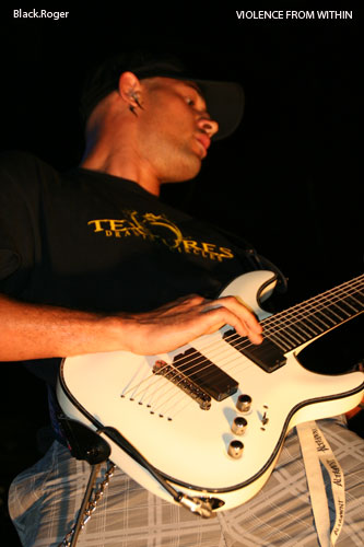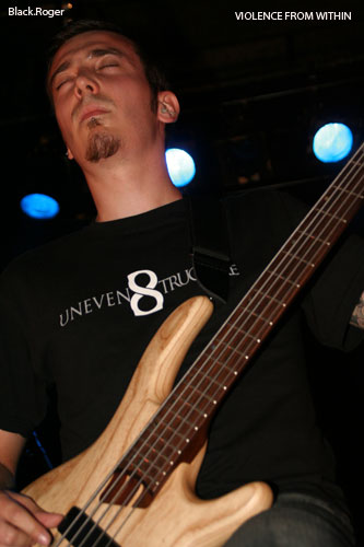 Changement de style pour la suite avec les locaux de VIOLENCE FROM WITHIN. Ici place à un deathcore évolutif, travaillé et progressif avec instauration d’ambiances recherchées et déchainement soudain de violence death-métal bien envoyée. V.F.W. exporte déjà sa musique dans les pays limitrophes comme l’Italie et bientôt la Belgique. Le combo a prit de l’assurance avec un frontman bien plus présent, des soli de gratte remarquables de précision. Bien sûr les nombreuses ruptures de rythmes ne sont pas favorables à un suivi physique de la part de l’assistance, mais leur musique a gagné en intensité et en technicité avec une certaine cohésion, c’est certain. Au final le quintette a très bien assuré, on apprécie.