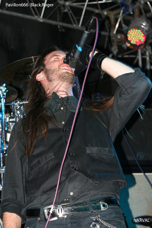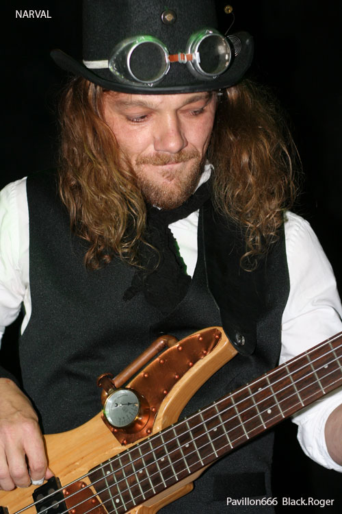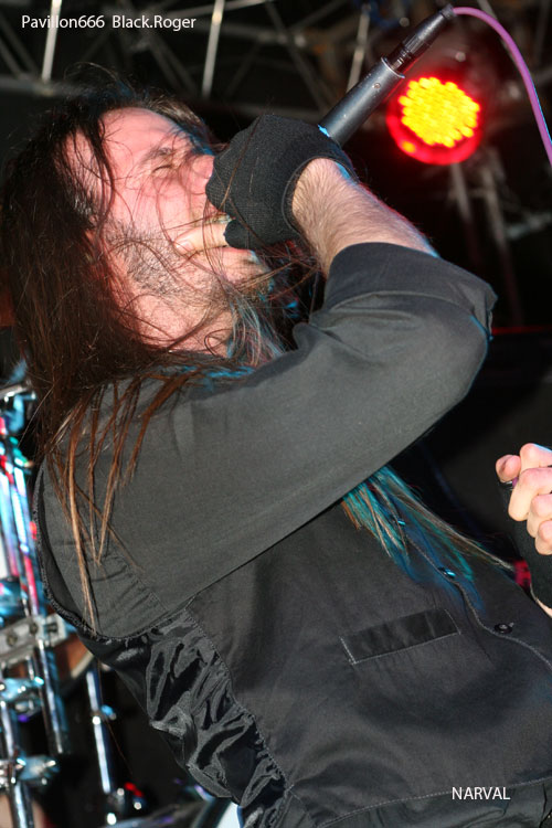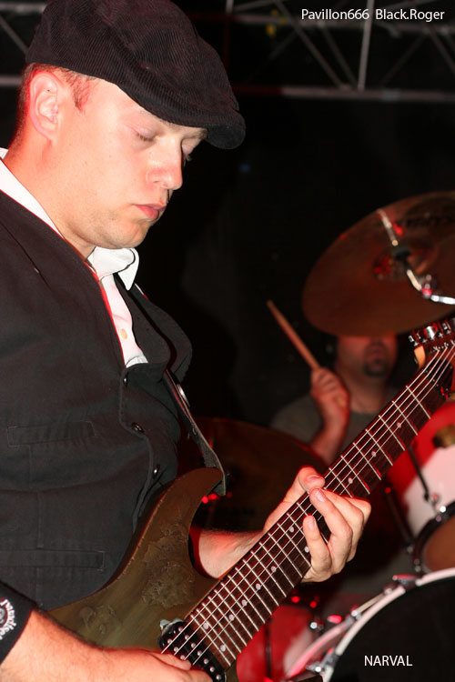 Le maigre public attend à l'extérieur que les Lyonnais du groupe NARVAL installent leur matériel, sous l'autorité bienveillante de leur chanteur Romain, (qui officie également dans ABSTRACT AGONY).Le groupe NARVAL fondé en 2007 est classé par les spécialistes dans le style "steampunk - death metal".En fait, son leader se réclame plus volontiers d'un death mélodique old school, à la DARK TRANQUILLITY,"école de Goteborg". Il est près de 21h30 quand les cinq musiciens portant chemise blanche et gilet noir,le chanteur brandissant sa canne de bois verni, entament leur set avec conviction. On a affaire à des gens chevronnés et consciencieux, cela se voit. Quant à la voix du chanteur, hurlée ou claire, elle est en parfait accord avec les instruments. L'ensemble est bien coordonné. On retiendra de cette prestation de 35 mn la rigueur et l'excellente maitrise du rythme. Deux morceaux m'ont particulièrement plu, "Blood Sweat and Tears" et "The Seeds of Uprising",lequel figure sur l'album de dix titres qui sortira prochainement.