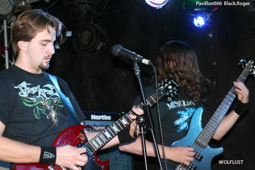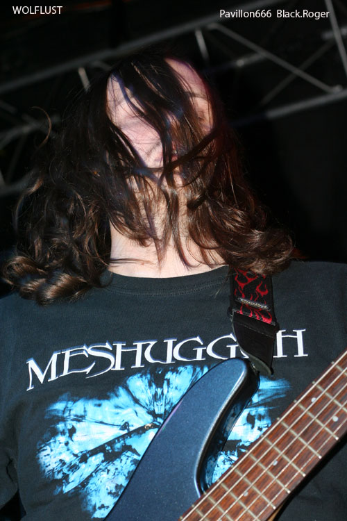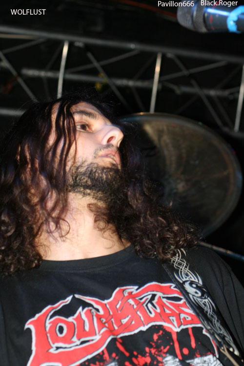 Peu après 20 heures, c'est le jeune groupe Grenoblois WOLFLUST qui, le premier, monte sur les planches. Ils sont quatre musiciens qui pratiquent un black-death metal,sans grande prétention au premier abord, parfois un peu approximatif, avec des phases sombres et lentes, d'autres plus énergiques. Mais il faut admettre, à sa décharge, que le quatuor est desservi par un son exécrable. Le chanteur fournit des efforts louables pour tenter de redresser la situation devant un public dubitatif et assez sceptique. Au bout d'une demi-heure, WOLFLUST met un point final à sa prestation. On souhaite à ce groupe sympathique et non dénué de talent de pouvoir s'affirmer comme il le mérite dans des conditions plus favorables.