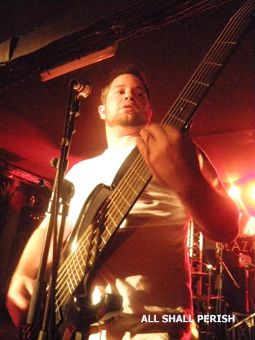 Second groupe très attendu de la soirée : ALL SHALL PERISH. Autant dire que les fans sont nombreux, suite à l’annulation de leur date parisienne il y a environ six mois, lorsqu’ils devaient ouvrir pour MACHINE HEAD. Les américains ce soir jouent la carte de l’efficacité en mettant en avant leurs titres les plus connus. On regrette qu’il n’y ait aucune chanson du nouvel album à paraître en 2011. Les temps forts sont lorsque le groupe exécute le magistral « Awaken the dreamers » ainsi que le fougueux « Eradication ». La présence scénique des musiciens est à toute épreuve et leur capacité à exécuter des plans techniques est absolument déconcertante. On apprécie de même la capacité à communiquer du groupe, puisque le bassiste Mike Tiner s’adresse régulièrement à l’assemblée dans un français simpliste mais correct. En revanche Hernan Hernida est quelque peu décevant. Certes, sa voix reste inimitable mais au niveau de la présence scénique il n’est pas du tout à la hauteur des nombreuses vidéos qui circulent de lui sur internet.