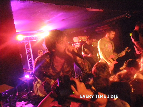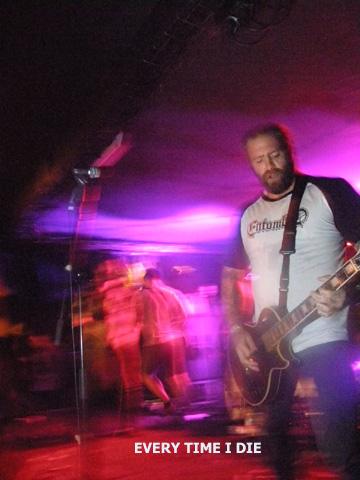 Fort d’un dernier album en date accueilli chaleureusement par la presse EVERY TIME I DIE est déjà en terrain conquis lorsqu’il monte sur scène. Son Hardcore/punk-rock direct est un régal sur scène, puisqu’il se communique aisément à une foule en délire. Sur scène EVERY TIME I DIE est un groupe très Rock’n’roll, que ce soit au niveau de son attitude ou du son en lui-même, je pense notamment aux guitares assez crunchies, relativement old school. Le grand moment fut lorsque le groupe exécuta le puissant et accrocheur « Wanderlust » dont le refrain fut reprit en chœur par le public. Keith Buckley nous prouve par la même occasion que même sur scène, il maîtrise parfaitement sa voix claire au timbre si singulier. En définitive EVERY TIME I DIE s’en sort très bien car, bien que leur musique soit moins brutale et moins technique que ALL SHALL PERISH, la pression ne retombe pas durant leur set, pour ne pas dire qu’elle augmente encore..