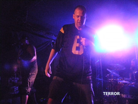 Hélas pour TERROR, une partie de la salle s’est déjà enfuie lorsque la formation culte monte sur scène. Qu’à cela ne tienne, TERROR se comporte de la même façon devant un Glaz Art à moitié rempli qu’à l’Elysée Montmartre. Scoot Vogel reste un des frontman les plus charismatiques du Hardcore et son acolyte, l’increvable David Wood semble encore plus excité que lors de son set précédent. Le défaut avec TERROR c’est qu’il est comme son slogan l’indique « Keeper of the faith », autrement dit sa ligne de conduite est toujours identique. C’est donc du Hardcore américain aux relents Punk, bien exécuté mais pas exceptionnel pour deux sous. La set list a quelque peu bougé par rapport à leur denier concert en France mais aucune prise de risque.