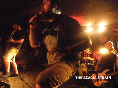 C’est à présent au tour d’un groupe très attendu par tous les fans de Death/hardcore de monter sur scène. Il s’agit de la valeur montante THE ACACIA STRAIN, dont la musique conventionnelle à réussi à trouver refuge auprès d’un certain public par le biais de vidéoclip tous plus débiles les uns que les autres (à ce niveau là ils concurrencent largement BLACK DAHLIA MURDER). Sur scène THE ACACIA STRAIN est moins amusant, plus agressif et surtout beaucoup plus efficace que sur CDs. Chaque plan est plus brutal que le précédent et la fosse devient de plus en plus agressive à chaque nouveau beatdown. THE ACACIA STRAIN n’invente rien mais les têtes de cinglés du bassiste et du chanteur valent le détour, tout comme leur set bien rôdé, très efficace sans être sensationnel. Un groupe à suivre, en espérant qu’à l’avenir ils se soucient légèrement plus de la mélodie, leurs rares plans mélodiques étant généralement de très bonne facture.