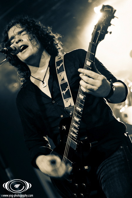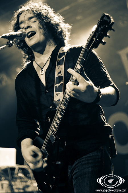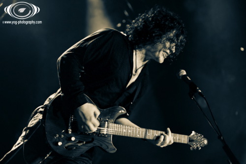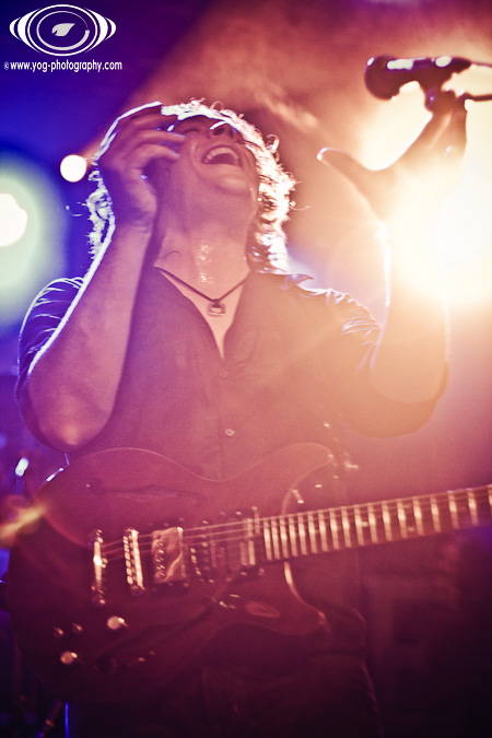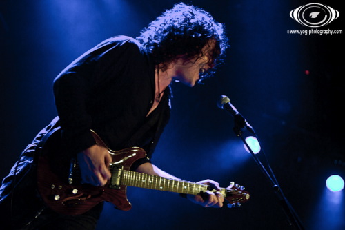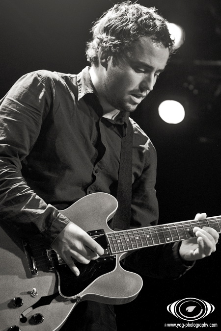 Petter Carlsen ne va pas tarder à monter sur scène pour débuter cette soirée qui s'annonce magistrale. L'homme, seul, se tient au centre de la scène, et va nous proposer en premier lieu un morceau très "intimiste" puisqu'il est accompagné de sa seule guitare. Le volume est assez bas, et le morceau dégageant une belle dose d'émotion est très calme ; j'en veux pour preuve que le public entendait le déclenchement des appareils photos des photographes situés entre le public et la scène !