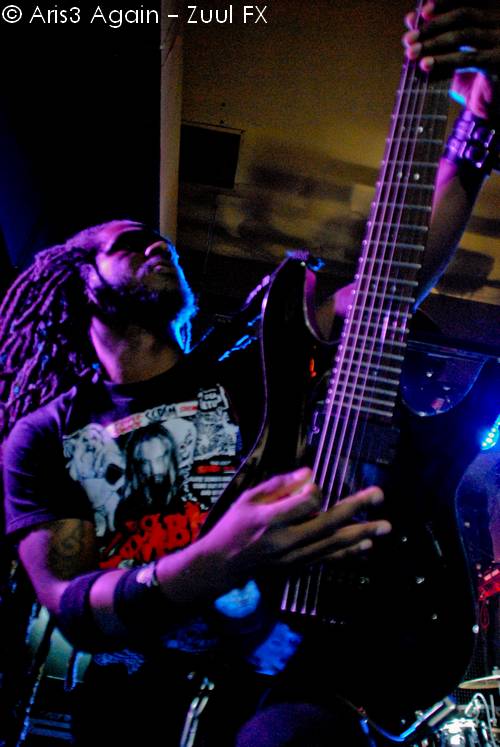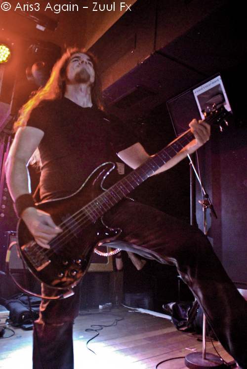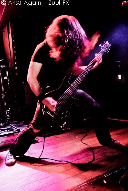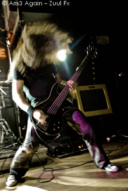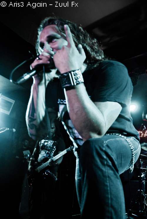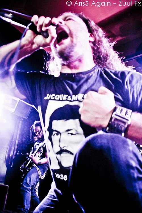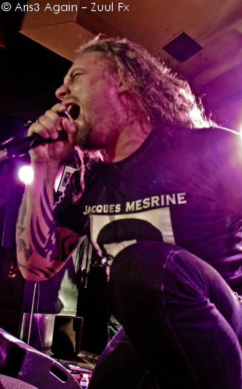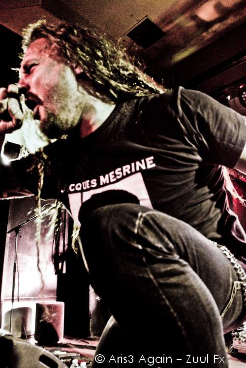 Le premier rang plaisante sur le temps qu’il faudra aux spectateurs pour s’enfuir. Et lorsque Steeve prend la parole pour annoncer le concert avant de lancer « Here is Pure Hatred », on s’attend à terminer en comité restreint. Et pourtant, preuve étonnante d’une ouverture d’esprit admirable, le public reste, et paraît même trouver de l’intérêt au set ! Au programme, les morceaux les plus connus et appréciés de Zuul FX, on n’a pas là de réelle surprise. Le petit bonus du set consiste en deux titres fraîchement composés, « Beat the Crap Out » et « Fighting for it’s Life », qui seront présents sur le prochain album du combo. On apprécie néanmoins d’entendre « Fight for the Cause » et « Cabal », deux titres diablement efficaces. Que ce soit sur les nouveaux ou anciens titres, les Parisiens donnent une jolie leçon à tous les groupes qui tentent de mélanger maladroitement mélodies et puissance. Scéniquement parlant, pas de surprises non plus, ça envoie fort, les musiciens assurent leur show en affichant un réel plaisir d’être sur les planches. Le public apprécie, et c’est une set list bien trop courte pour les metal heads comme pour les venus pour la soirée précédente. Zuul FX nous balance un « I8U » final classique, mais ultra efficace, les premiers rangs headbanguent en rythme et tous les présents se prêtent au jeu de reprendre en chœur avec le chanteur. Le concert se termine en joyeux bazar, acclamé par un Bus Palladium conquis. En seulement six morceaux, le combo aura réussi à nous mettre une belle claque et à convaincre un public pas vraiment gagné à sa cause. On applaudit en tout cas également le fameux public, pour son ouverture d’esprit et sa bonne humeur, qui aura contribué à rendre cette soirée très sympathique. Il va désormais falloir s’armer de patience avant de pouvoir revoir Zuul FX sur scène, pour ma part, ce sera en décembre à Vauréal, en première partie de Dagoba.
