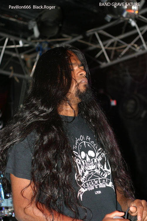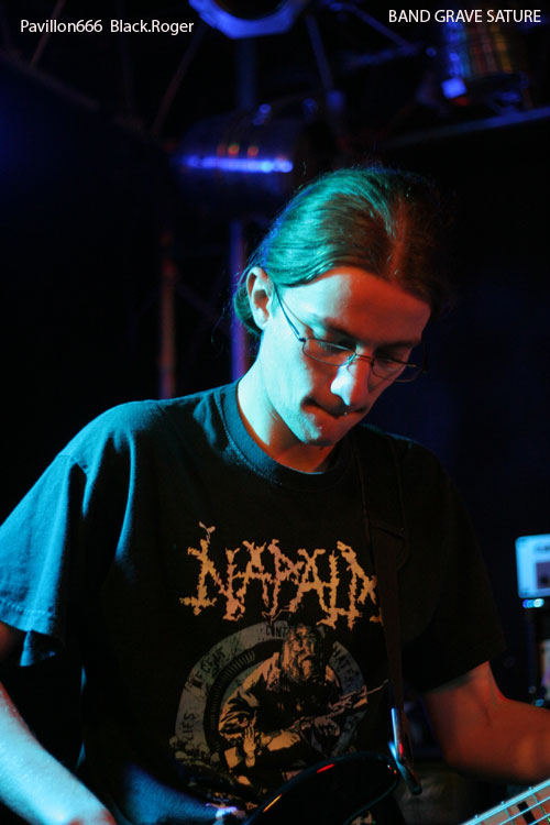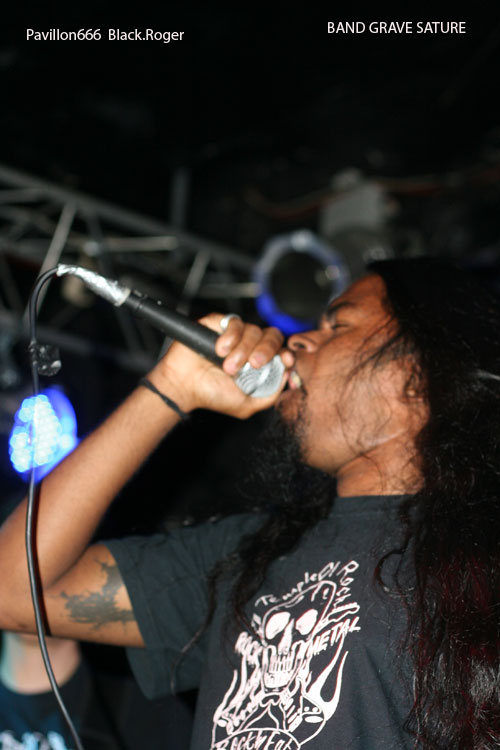 C’est à BAND GRAVE SATURE, nouvelle formation du Nord Isère que revient l’honneur de débuter. Nouveau, oui si on veut, car nous reconnaissons deux anciens membre de feu-ZEROPOINT, Scafe aux vocaux et Olivier B ; à la basse. C’est pour eux un nouveau départ dans un métal extrême fait de death, de thrash et de Grind, leur premier concert après seulement un mois d’existence en tant que groupe. Au menu du métal qui fait mal, qui arrache. Scafe tient bien le micro et nous envoie ses « growls » à la figure. Ses acolytes essaient d’assurer, avec au fond une batterie programmée et autres samples manipulés par BartRose. L’idée est bonne, un potentiel se fait jour, mais évidemment beaucoup de choses sont approximatives et la cohésion est à revoir et à peaufiner pour la suite. Il faut bien commencer un jour de toutes façons, alors comme dirait mon ami le thrasher fou, « wait and see ».