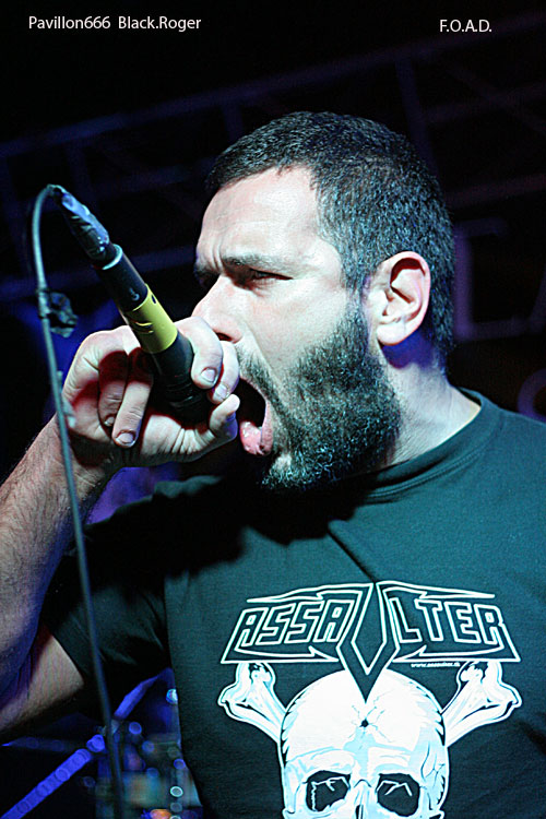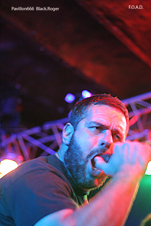 F.O.A.D; va maintenant lâcher les décibels, remonté comme un « coucou » (Suisse ?). Le groupe a prit une certaine ampleur surtout au niveau des guitares, lourdes à souhait. Le frontman s’éclate et s’amuse pendant que le batteur est un peu à côté de la plaque ce soir, mais assure néanmoins. F.O.A.D. c’est maintenant un mélange inextricable de thrash, death, grind, stoner et hardcore bien consistant qui tient la route camarade. De nouveaux titres, dont « [We Are] The Dead Alive » sont bien accrocheurs cette fois-ci. Bien sûr une bonne reprise en milieu de set c’est toujours bon à prendre. Alors ce soir ce sera le fameux « Refuse/Resist » de SEPULTURA grogné à deux voix avec Lionel et Thierry du combo précédent. Le set sera écourté d’un titre, la faute au batteur encore une fois, mais on ne lui en veut pas. Ce fut donc court mais intense comme on dit souvent. Je ne sais pas si l’on reverra le groupe au Lyon’s Hall à l’avenir, car des soirées « mortes » comme celle-ci ça va commencer à faire comme dirai mon cousin Suisse énervé et dégoûté.
