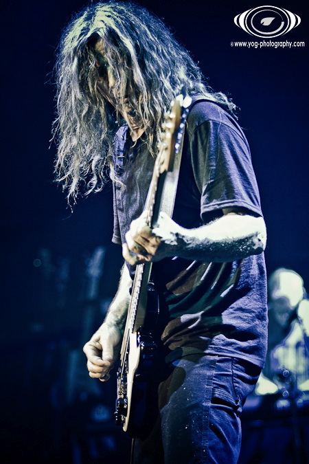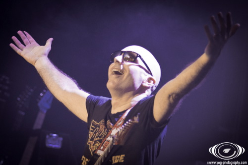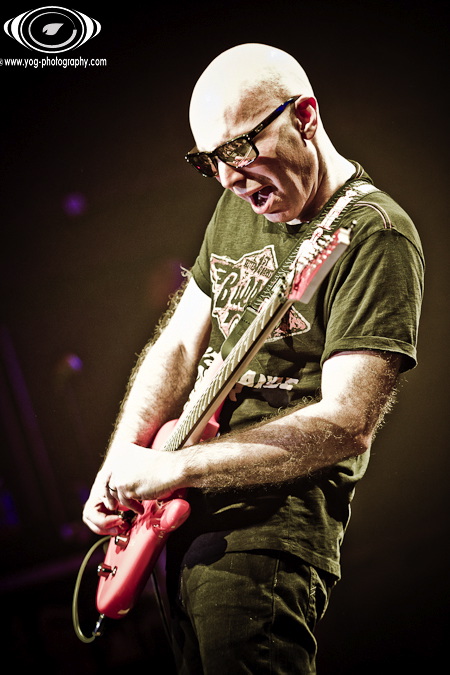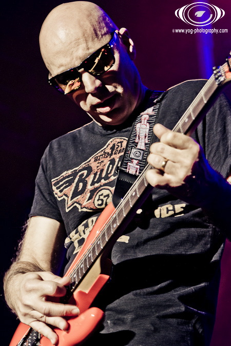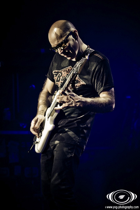 D'ailleurs, il n'hésite pas à remercier le public pour son implication, et garde le sourire durant les deux heures de spectacle auxquelles nous avons le droit. Alternant "grands classiques" comme "Ice 9", "Flying In A Blue Dream", "War", "Crystal Planet", The Mystical Potato Head Groove Thing", "Always With Me Always With You", "Summer Song", avec d'autres titres de sa discographie bien plus récents et qui m'ont généralement, et je le redis : gé-né-ra-le-ment, moins inspiré. Augmentant le tempo sur certains titres, Satriani confère à ses chansons une autre dimension en live ; c'est nettement plus vivant et entraînant.