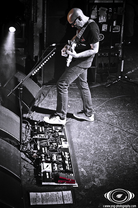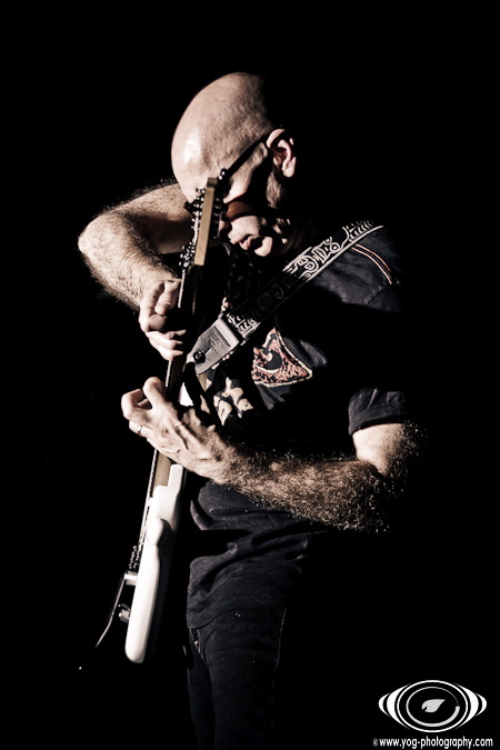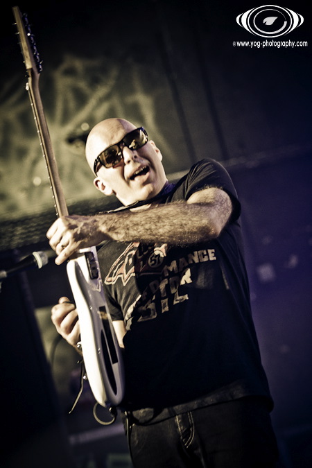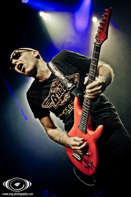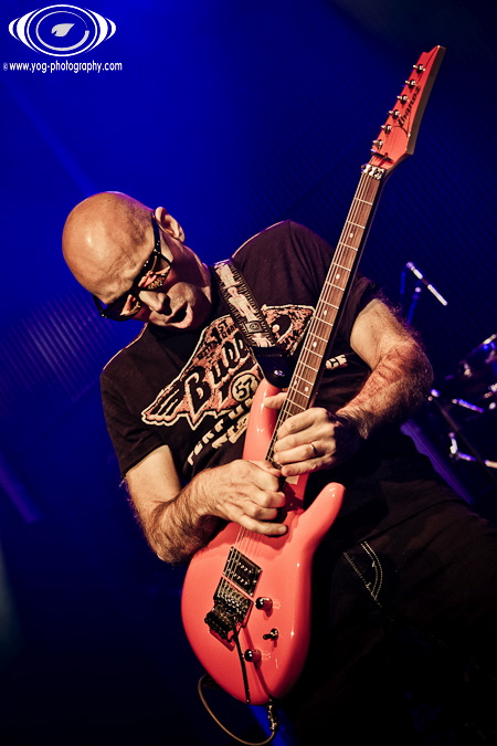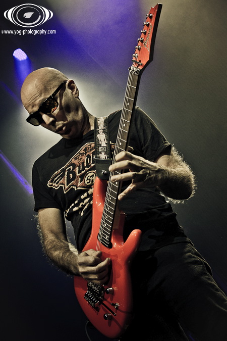 Satriani étonne, Satriani subjugue, Satriani s'amuse. Toujours avec ses mimiques dérisoires, ce grand monsieur de la guitare vit littéralement ce qu'il joue. On peut lire toutes ses notes sur son visage, on peut deviner ses riffs à ses mimiques ; ça joue rapide, ça joue net et ça sonne du feu de dieu. Des rifts implacables, des solos ravageurs, une technique de legato qui hérisserait la barbe à mamie, une présence scénique incontestable, un capital sympathie énorme et une tête toujours aussi bien rasée ; rien à redire sur notre nouvel ami Satch.