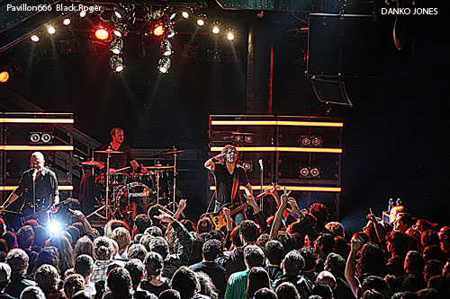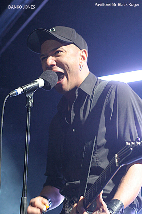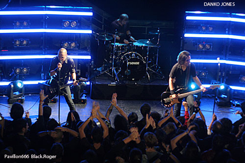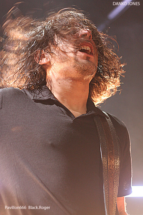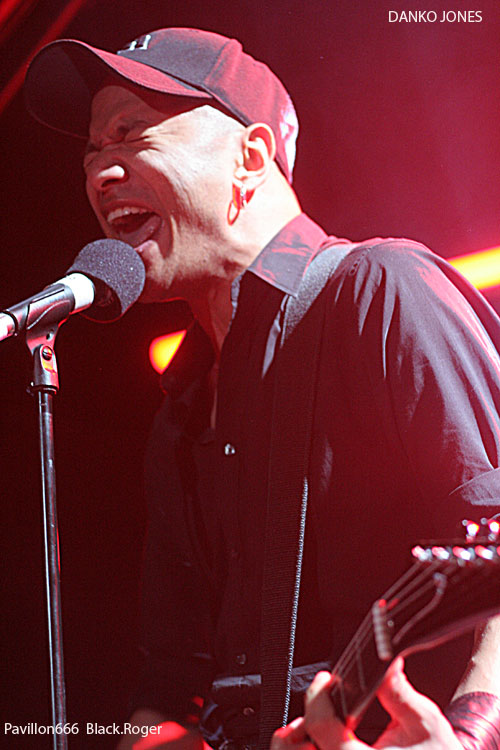Pendant le changement de plateau on espère que DANKO JONES réussira à nous pulser et nous faire enfin vibrer avec ses compositions plus « hard n’roll. Le combo se fait attendre, se fait désirer, les fans du premier rang, arborant les t-shirts du groupe s’impatientent en manifestant bruyamment. Après un assez long moment, le trio Canadien grimpe enfin sur les planches et nous balance d’entrée de jeu « I Think Bad Thougts » et « Active Volcanoes », deux morceaux issus du nouvel album « Below The Belt ». Les décibels sont lâchés, le public exulte. Danko semble en forme derrière son micro et déverse des riffs mordants, guitare en mains. John, lui est bien remuant et nous propose des lignes de basse bien soutenues pour maintenir un groove binaire envoyé par une batterie efficace coincée entre deux grosses rampes de lights.