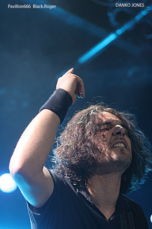 Après six albums et des concerts à la pelle, DANKO JONES sait comment contenter un public de fidèles qui reprend en choeur les refrains et les paroles du meneur de jeu qui, très volubile, ne ménage pas ses discours entre chaque morceaux. DANKO JONES c’est du sexe et du rock, du sexe surtout en fait et les textes ne laissent planer aucun doute la dessus. Ici donc pas de rock rebelle, mais un rock plutôt « fun » bien envoyé qui se rapproche plus de celui d’un THIN LIZZY que celui d’un MOTÖRHEAD, ajoutez une louche d’influence AC/DC et le tour est joué. Le trio va se concentrer sur des titres du dernier opus, mais aussi sur son album de 2006 « Sleep Is The Enemy », sans oublier « Code Of The Road » et « Sugar Chocolate » + « Sugar High ». Une petite reprise de RUSH « YYZ- Tease » est aussi au menu. Dans la fosse, il faut attendre la dernière partie du show pour que ça remue enfin. Mais au bout d’une heure de rock n’roll sauce Danko, le trio s’en va, pour revenir bien sûr avec un rappel consistant de quatre morceaux dont « Dance », extrait de « We Sweat Blood » de 2005. Fin du set, musique d’ambiance, extinction des feux de la rampe sur scène.