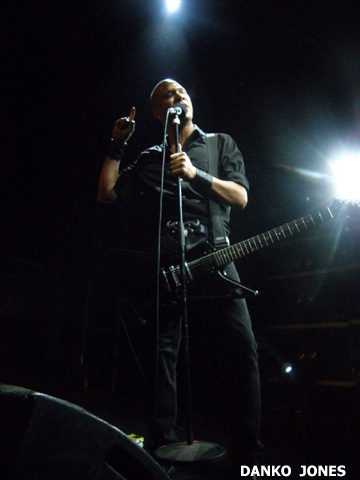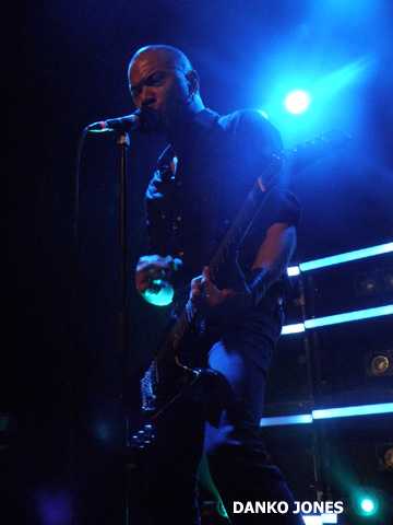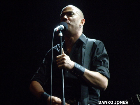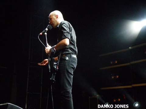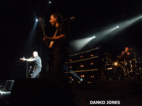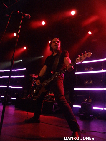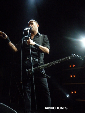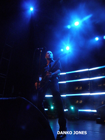Le temps d’un changement de plateau relativement court, c’est au trio canadien de monter sur scène. Après leur amusante intro, c’est un « I Think Bad Toughts » extrêmement pêchu qui vient vous percuter de plein fouet. Comme d’habitude le son de la formation est irréprochable et le père DANKO est ce soir en pleine forme, que ce soit au niveau de la voix où de son jeu de guitare. Les titres s’enchaînent vite et force est de constater que les canadiens sont bien plus performants dans une salle intimiste que dans un palais omnisport. Nombreux sont les moments de contact avec le public ou DANKO JONES interpelle au hasard des individus, créant ainsi un véritable dialogue. Ce garçon a la faculté de rebondir sur le moindre murmureprononcé dans la fosse pour dériver ensuite dans de grands délires. Rares sont les frontmen qui dégagent à la fois autant de sympathie et de sincérité. Hélas, la setlist fut sans aucune prise de risque. Ainsi, le groupe s’est appliqué à exécuter l’ensemble de ses singles, qui furent tous repris en chœur par un public conquis. Citons « Fist date », « Take me home », « Baby hate me », « Lovercall » etc.