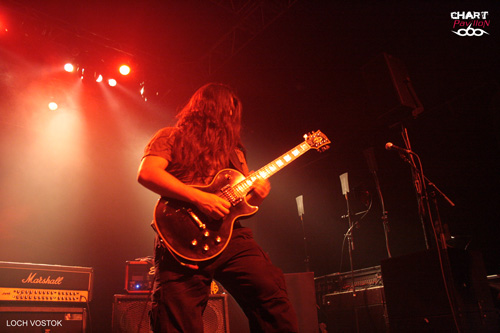 Les suédois de LOCH VOSTOK font les premiers leur entrée sur scène. On reconnait d’entrée de jeu un style tout à fait suédois justement. Le groupe s’inspire de ses prédécesseurs et compatriotes de la scène death suédoise en y ajoutant une bonne dose de mélodies. On est à la croisée des chemins avec des parties parfois heavy avec une voix claire fort mélodieuse qui contraste avec un peu plus de puissance typiquement death. Même si la sauce ne prend pas à 100%, le public semble néanmoins intéressé par ce nouveau venu. Le set est de toute manière assez bon quoiqu’un peu court pour ce groupe qui a tout de même encore besoin de se roder pour se sentir totalement à l’aise sur de telles scènes.