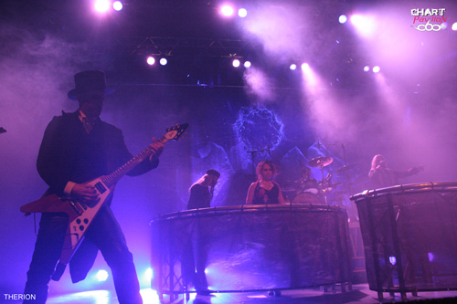 La set list du concert est un bon mélange des différentes périodes de l’histoire du groupe. Bien entendu, on trouve des morceaux du dernier album dont le fameux « Sitra Ahra » en ouverture de concert ou « Unguentum Sabbati » juste avant le rappel. Mais les morceaux plus anciens sont légion, « Lemuria », « Typhon », « Kali Yuga III », « Wine Of Aluqah » et j’en passe… Même Mozart avec le « Dies Irae » est mis à l’honneur. Mais que serait un concert de THERION si le groupe ne terminait pas son show avec en rappel l’énorme « To Mega Therion » ?