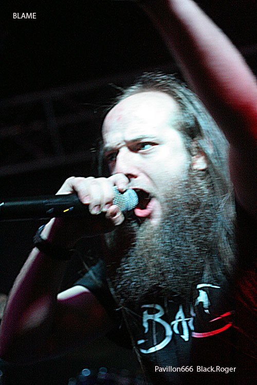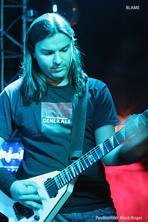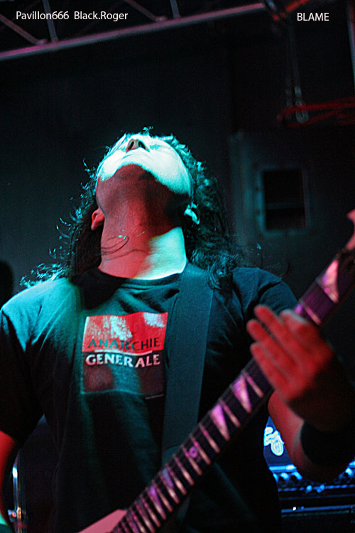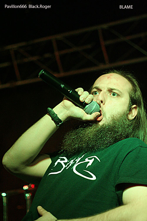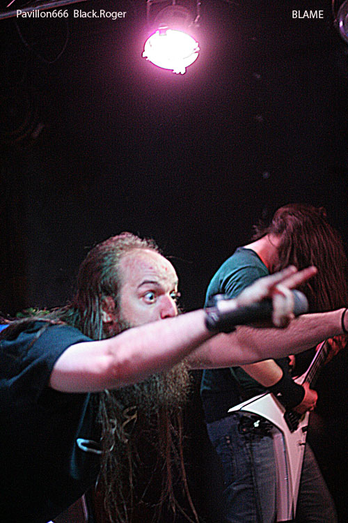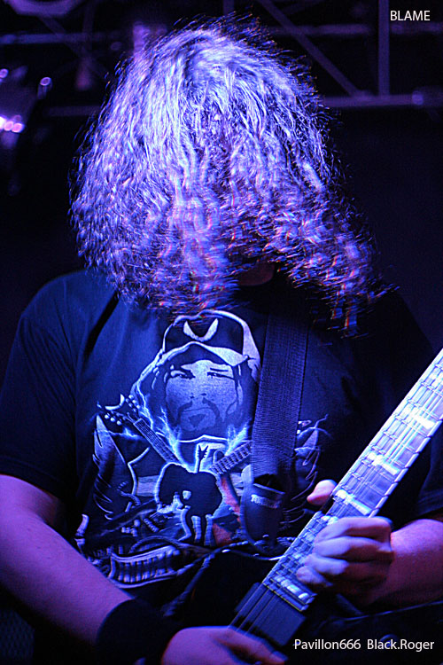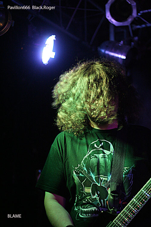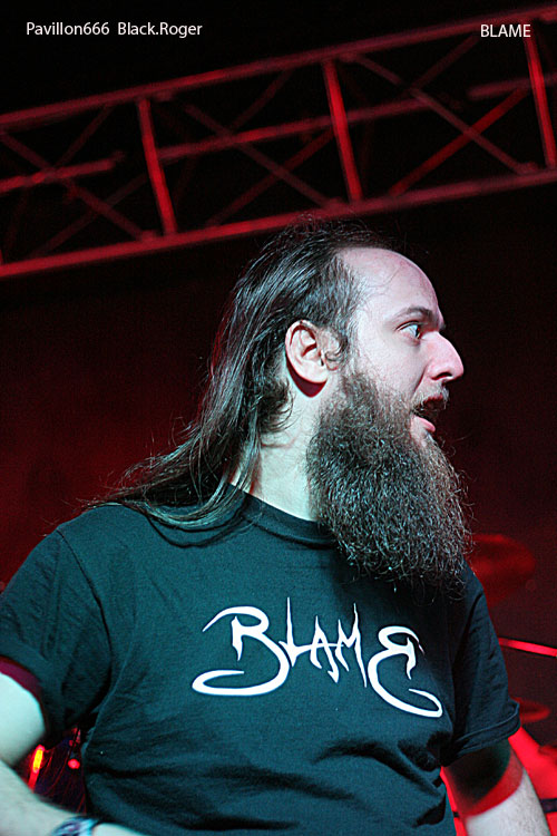 Le groupe a puisé ses influences dans des groupes comme CARCASS, DEATH, BRUJERIA et NECROPHAGIST pour nous concocter un mélange explosif particulièrement efficace. Mais où est passé le frontman ? Il va et vient pousser ses vocaux destructeurs et enragés dans l’assistance, s’assied sur scène, invective les autres musiciens, bref il fait le spectacle et arrive à faire bouger tout le monde, il est satisfait. A ce moment là je pense tout d’un coup que ce groupe doit faire un malheur avec une assistance nombreuse et motivée, c’est un groupe de scène. Mais ne vous y trompez pas, les morceaux sont bien structurés et variés, on peut dire que ça joue vraiment, qualité rime ici avec défonce métallique. Dans ces conditions on en redemande, bonne découverte de cette affiche, BLAME nous a en quelque sorte « bluffé » dans le bon sens du terme.