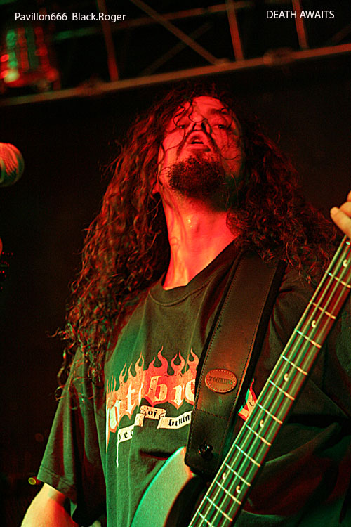 Ce démarrage se fera avec les Lyonnais bien connus de DEATH AWAITS qui vont essayer de chauffer une assistance bien figée et froide avec des compositions qui arrachent et qui « groovent » (qui a dit comme d’habitude ?). Avec désormais deux guitaristes en première ligne, la puissance de feu du groupe a été renforcée. Et nous avons toujours ce duo basse batterie qui décoiffe et fait la loi, et puis ce frontman déchainé qui en impose et vous prend à la gorge.