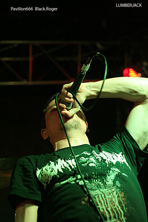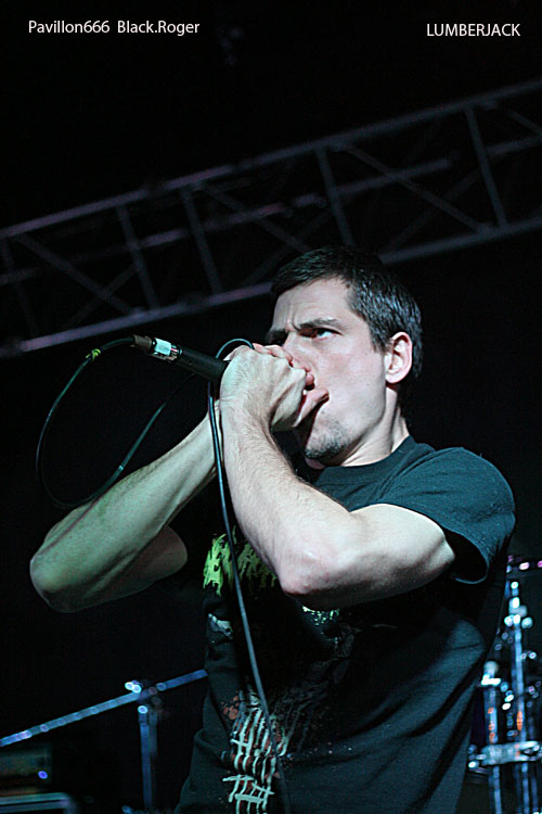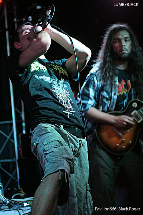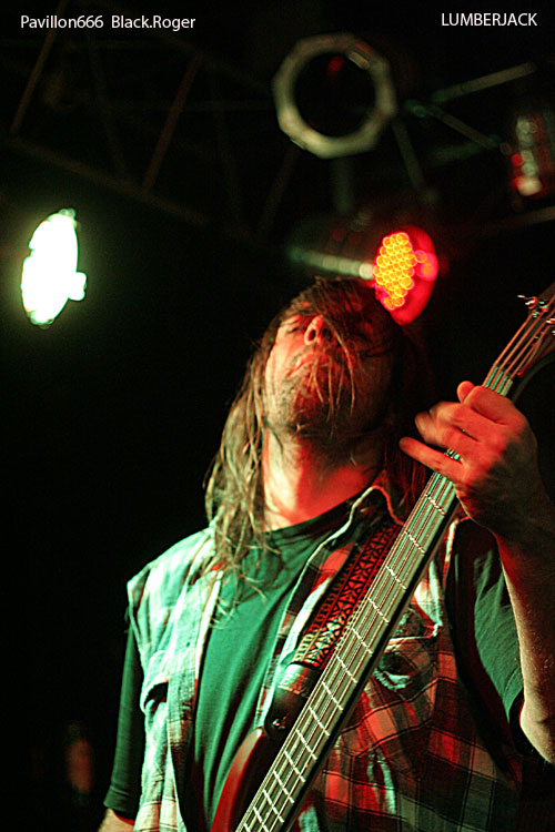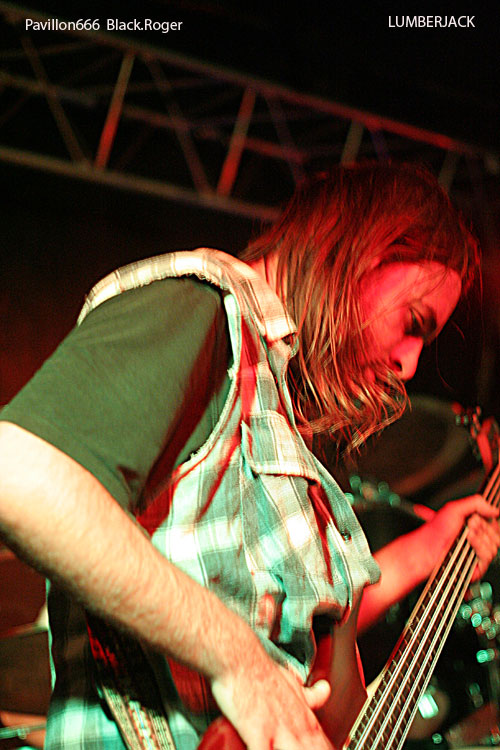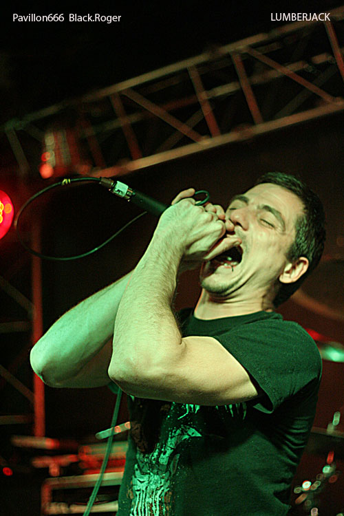 Passons maintenant aux groupes « étrangers » à Lyon comme LUMBERJACK venu de Marseille pour nous faire apprécier son death forestier (c’est lui qui le dit). Le combo, arrivé tardivement n’a pas eu le temps d’effectuer sa balance, alors il va jouer un peu à l’arrache ce soir. Effectivement le son est un peu (beaucoup) mauvais sur les premiers titres ce qui ne va pas arranger la prestation des gars du Sud évidemment. Les guitaristes ont revêtu des chemises à carreaux pour le look des bûcherons du métal-qui-tue, mais ça s’arrête là. Le jeu est plutôt moyen ce soir et le chanteur a beau se racler la gorge avec ses « growls », le public reste dans l’expectative ou s’en va dehors dans le compartiment fumeurs. Dommage car les compositions semblent au point, il manque simplement un peu de punch, un peu de motivation, bref il manque quelque-chose pour nous accrocher vraiment le fond de l’oreille et tout parait de ce fait linéaire au bout d’un moment. A revoir donc dans d’autres conditions car ce groupe mérite mieux.