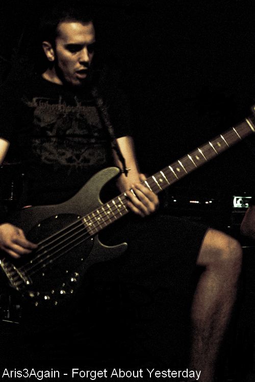 Après de longues explications à la charmante sécurité de la Scène Bastille pour ne pas être contrainte de devoir placer sac et reflex au vestiaire, me voici donc dans la salle, alors que le set de Forget About Yesterday vient de débuter. Pour la petite histoire, My Princess Is a Whore a visiblement splitté, et son guitariste Brian a fondé un nouveau combo, intitulé donc Forget About Yesterday. La formation offre donc ce soir son premier concert sous cette configuration, d'où un léger manque de cohésion entre ses membres. Musicalement, le groupe se situe à la frontière du hardcore et du deathcore. Si leurs titres ne sont pas originaux pour un sou, ils sont en tout cas joués avec entrain et énergie. David, le chanteur de la petite troupe, est assez charismatique et communique plutôt bien avec un public encore malheureusement peu nombreux. Les musiciens sont efficaces et carrés, aidés par un son paraissant presque bon pour la Scène Bastille. On passe un bon moment en compagnie de Forget About Yesterday, même si le groupe ne réussit pas vraiment à se démarquer de toute la vague deathcoreuse du moment. En somme, une première partie sympathique, pas désagrable, mais pas non plus mémorable .