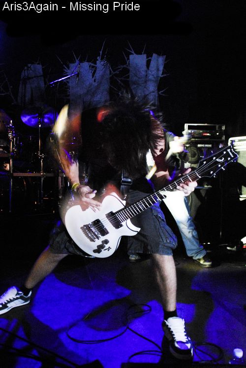 C'est maintenant au tour du deuxième groupe, Missing Pride, de monter sur les planches. Après le départ de son chanteur, le combo a su rapidement trouver une alternative, et embaucher deux chanteurs cette fois, Phil et Lodex. Ce nouveau line up semble lui réussir, puisque la formation est sur le point de sortir son premier album et propose régulièrement des shows dans la capitale et ses alentours. Les musiciens maîtrisent bien leurs instruments et le duo des deux leaders se révèle efficace et relativement harmonieux. Avec ce nouveau line up, les Missing Pride ont visiblement tendance à alourdir leur musique, qui devient au fur et à mesure de plus en plus rapide et brutale. Que l'on accroche ou non, il faut bien reconnaître que le combo est très énergique et dynamique sur les planches. On apprécie par ailleurs l'aisance du batteur derrière ses futs, qui ajoute une grande puissance aux compositions du combo. Le public semble apprécier et se montre réactif aux différents morceaux de la petite troupe, qui réussit même à lancer un (mini) circle pit. Pour ma part, musicalement parlant, ce n'est pas vraiment ma tasse à thé, mais il faut reconnaître que les Missing Pride assurent bien leur show et affichent une belle énergie tout au long de leur set.
