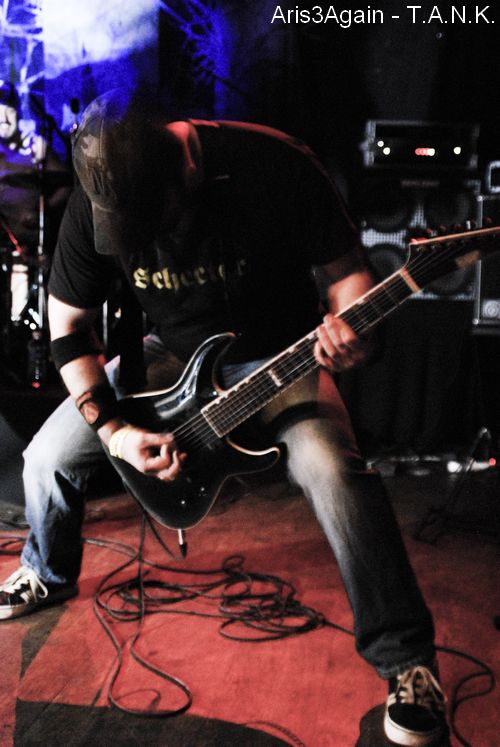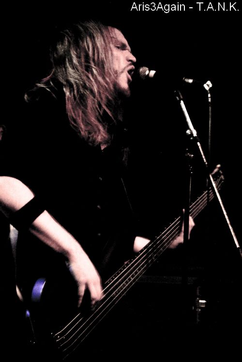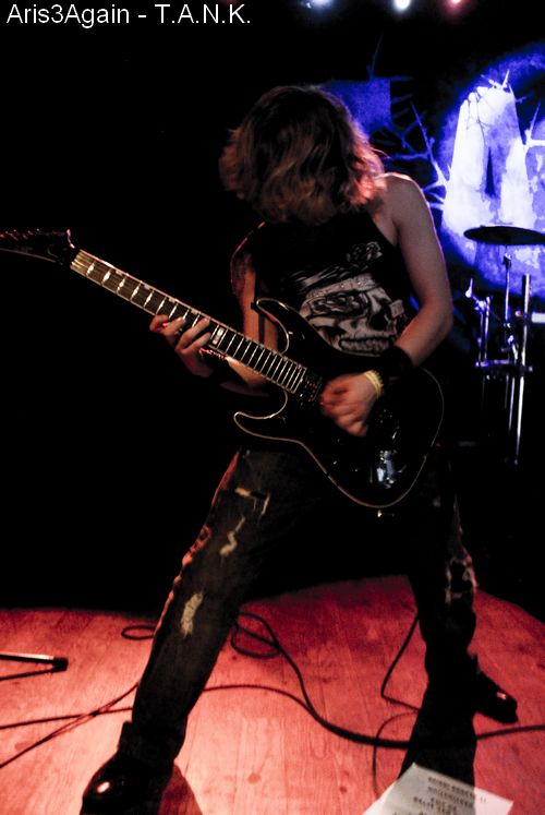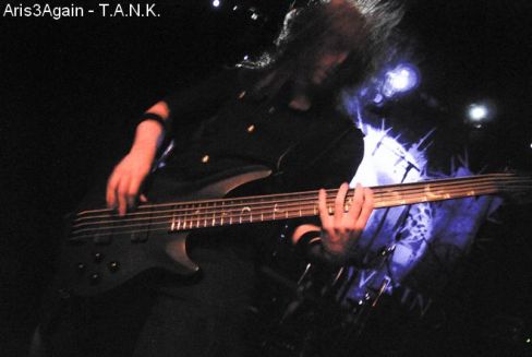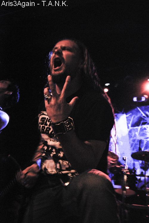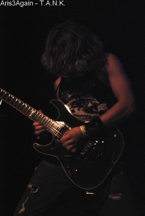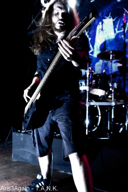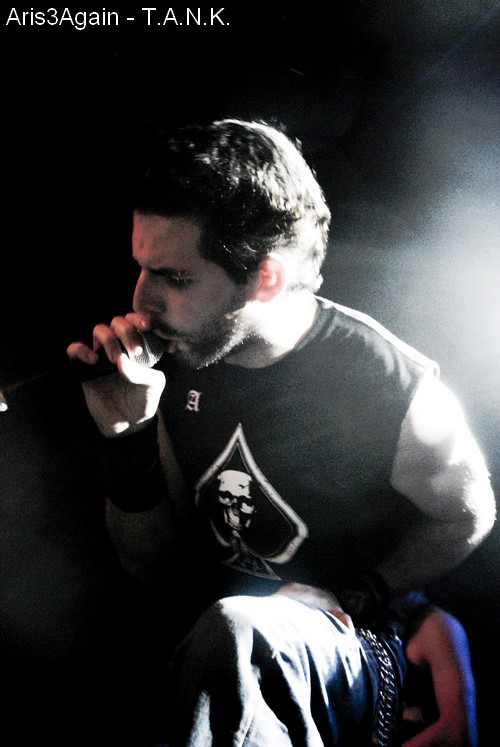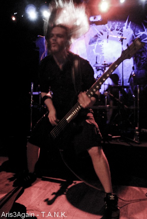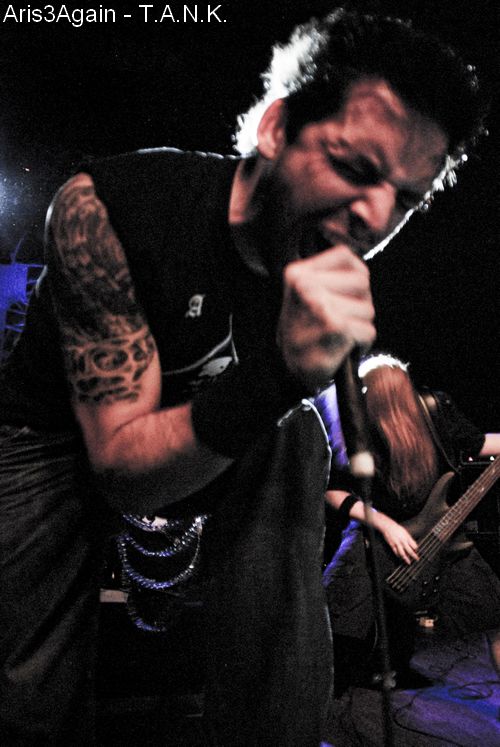 Le moment est maintenant venu pour la tête d'affiche de débuter son set. Après quelques balances, les lumières s'éteignent, et les membres de T.A.N.K. arrivent un à un sur la scène. Proposant un Death mélodique rempli d'influences diverses, ce combo du 77 vient de sortir son premier album et se révèle l'un des groupes les plus prometteurs du style en France. Les hostilités commencent par un "Disturbia" mettant tout le monde d'accord. Les musiciens sont à la fois charismatiques et carrés, et le chanteur s'impose en sympathique et efficace leader. Le public se montre une fois de plus réactif à la musique proposée par le groupe, et se laisse aller à scander les quatre lettres du nom de la formation sur "T.A.N.K.". Malgré des voix claires peut-être un peu trop présentes sur des morceaux tels que "Corpse", les compositions passent haut la main l'épreuve du live et le show se veut professionnel et très dynamique. Les titres les plus rapides de l'album sont également joués, et on adhère donc avec grand plaisir à "The Day After" ou encore "So Vile". Le public semble apprécier le set proposé par T.A.N.K., et quelques uns se prêtent même au jeu du wall of death.