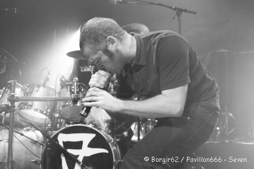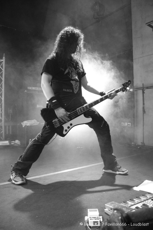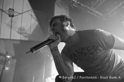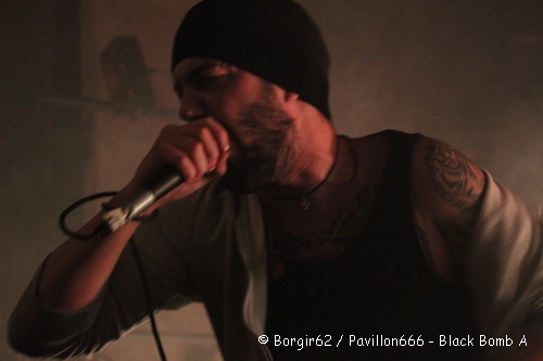 Le temps de faire un petit sondage au sein du public pour savoir quel groupe était-il venu voir en priorité (les réponses seront Black Bomb A et Ultra Vomit à égalité chez les plus jeunes, Loudblast pour les spectateurs un peu plus expérimentés) et Se7en débarque sur scène. Première surprise, juste à côté de la setlist collée au sol se trouve un classeur avec les paroles de leurs chansons… Ca pourrait se justifier si Se7en accueillait dans ses rangs un nouveau chanteur, mais ce n’est pas le cas ce soir…Je ne connaissais pas trop ce groupe, et c’était une totale découverte en concert. Les échos que j’en avais eus étaient assez mitigés, et après leur show, je resterai un peu sur ma faim. Attaquant avec « Vice Scream », les Dunkerquois sont assez proche d’un metalcore agrémenté par des touches electros et des influences power metal, qui s’avère au final être un peu lent. Si Arkanan avait su nous réveiller, Seven n’a pas cette vocation et aura du mal à entraîner le public dans son élan. Néanmoins, le groupe a choisi de se baser sur un chant engagé à dominante française, et des groupes tels que Lofofora ou Mass Hysteria nous viennent forcément à l’esprit quand on prête ne serait-ce que deux minutes d’attention. Le show s’éternise un peu et si des morceaux comme « Superflux » ou « Beauty Spot » étaient assez agréables, « Made In Pain » ou « Bad Trip » n’auront pas l’impact voulu sur le public, qui commence peu à peu à déserter la salle et à se rapprocher du bar et du stand de sandwich. Je décide d’en faire autant avant la fin du dernier morceau, histoire de prendre des forces avant Black Bomb A.