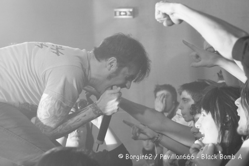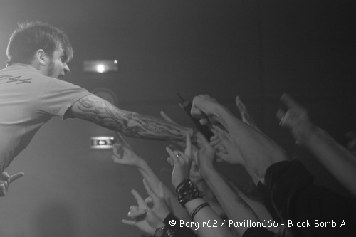 Puis la déferlante Black Bomb A arrive. Pour être franc, je ne suis pas ce que l’on peut appeler un fan de ce groupe parisien, qui jouit pourtant d’une renommée plus que respectable ! Un public conquis d’avance, qui ne demandait qu’à prendre son pied va littéralement exploser lorsque Djag et Poun viendront se mêler au public. Dès le premier titre, on sent que la bande à Hervé ; que l’on retrouvera quelques instants plus tard pour Loudblast, n’est pas là pour balancer un simple show. Non, Black Bomb A va nous livrer un set digne d’une véritable tête d’affiche, aussi bien sur le fond que sur la forme. Kicks, tournoiements, le groupe n’est pas avare d’efforts et ceux qui n’adhérent pas au style BBA apprécieront tout de même la prestation scénique. C’est notamment grâce à cette prestance que jeunes et moins jeunes se jetteront à corps perdus dans les circles pit et autres pogos qui animeront cette partie. Concernant le groupe en lui-même, le duo de chanteurs, qui soit dit en passant sont parfaitement complémentaires, n’est pas le seul à animer le set. Snag et Etienne sont survoltés et n’hésitent pas à hurler pour demander la participation du public sur les refrains les plus connus. Car qu’on se le dise, le groupe n’a pas misé sur la difficulté concert sa setlist puisque l’on a le droit à des grands classiques comme « Mary », « Look At The Pain » ou « You Can’t Save Me ». Bref, les mêmes morceaux que lors du concert au Trabendo deux jours plus tôt, que vous avez pu suivre sur votre webzine favori. Je pourrai également vous parler d’un son relativement bon, à l’exception d’une batterie parfois mise en retrait et d’autres fois couvrant le son des cordes, mais l’essentiel est là : Black Bomb A nous a livré un show d’un excellent niveau.