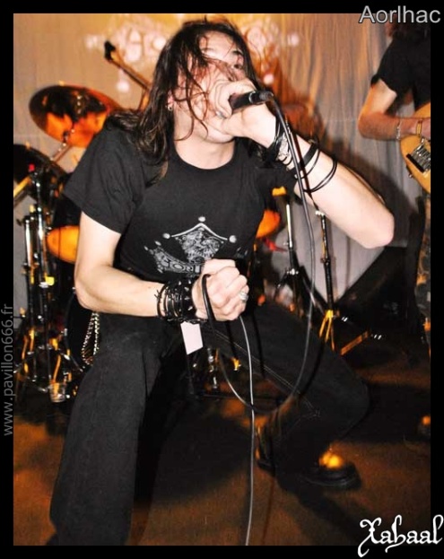 C’est maintenant au tour d’AORLHAC de prendre place sur la scène du Korigan. Encore un groupe Français, le dernier pour ce soir. Ils ont un deuxième bon album à défendre ici. Toujours dans la rubrique médiévale et épique, AORLHAC se dévoilera sans peines. Trois guitares sur scène, une basse, une batterie et un chanteur, forcément cela fait du monde pour cette petite scène. Ce qui ne semblera pas poser de problèmes à leur chanteur et frontman qui se révélera réellement énervé. Peut être en fait-il un peu trop ? Il est vrai que son attitude sur scène en rebutera certains et que ses efforts pour motiver un peu le public toujours statique se révéleront vains. Mais une chose est certaine, AORLHAC est un groupe à voir. La musique prend aux tripes et nous sommes portés par le dynamisme et l’efficacité des compositions, avec Ardraos (CHRISTICIDE) derrière les futs, le groupe en aura convaincu plus d’un. Avec en surprise l’arrivé d’un guest sur scène, Cervantes et sa cape rouge de DARKENHÖLD. Un bon moment, à revoir d’urgence.