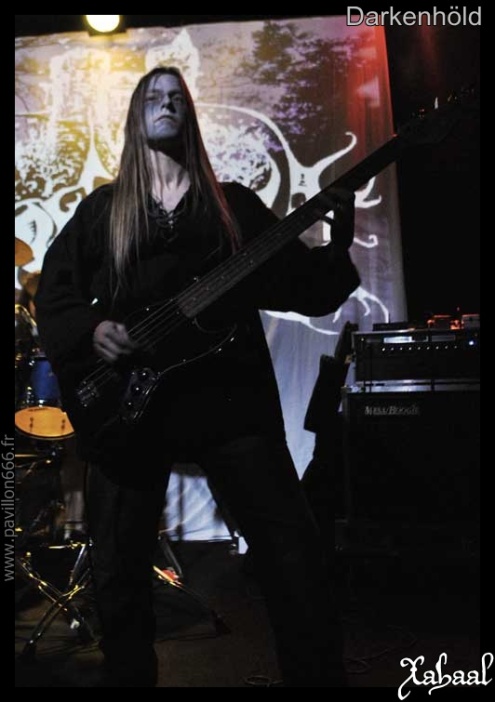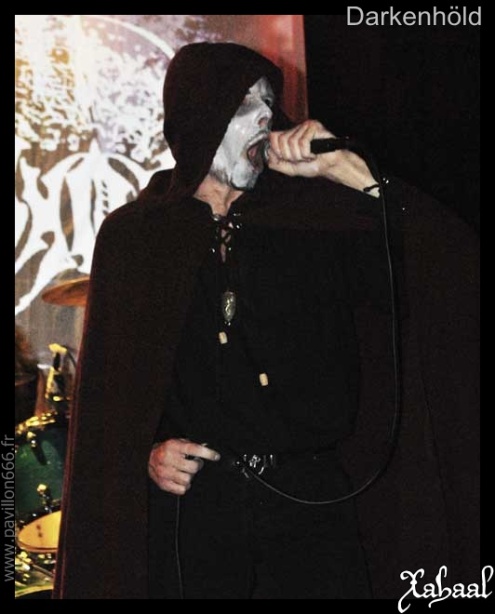 La lourde tâche de l’ouverture revient à un groupe de la région : DARKENHÖLD. Œuvrant dans un style plutôt mélodique, voire épique, aux forts accents médiévales, le groupe nous présentera un set carré mais plutôt court. Corpse paint, robe de bure et cape rouge, l’imagerie est importante ici et travaillé. Même si on est en droit de se demander si la cape rouge n’est pas de trop. Toujours est-il que musicalement la magie prend, la voix est un peu faiblarde et aura du mal à passer, mais les mélodies sont prenantes. Le jeu très statique des musiciens sera sans doute là pour renforcer l’expression glaciale du public. Il reste donc un travail de mise en scène à améliorer, car le black metal épique de DARKENHÖLD mérite de s’ouvrir à un large public.