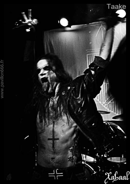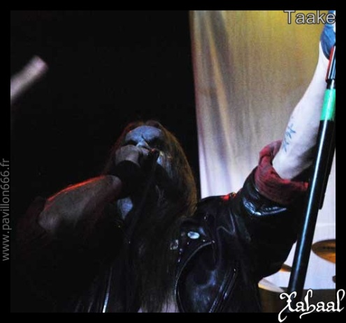 TAAKE, le groupe tant attendu de la soirée, les légendes du black metal norvégiens, vont enfin arriver. Ce n’est qu’après une intro des plus longues que Hoest et sa bande vont faire leur apparition. Et c’est partie pour un show incroyablement dynamique et déjanté made in TAAKE. Pas carré pour un sou, l’ambiance est très rock’n roll et les célèbres grimaces d’Hoest ne font que renforcer ce côté « je m’en fous j’suis une légende », assez appréciable. Très présent sur scène, certainement pas sobre, le frontman est seul maitre à bord de l’entité. TAAKE s’en donnera à cœur joie tout en faisant participer son public en leur donnant le micro de temps en temps. Très peu appréciable pour nos oreilles ceci dit. Le show est de bonne facture, le côté pas carré du tout n’est pas quelque chose qui va déranger l’ensemble du public black metal. Par contre, la voix d’Hoest n’a pas l’air très en forme ce soir, et après avoir cassé son premier microphone, nous ne l’entendrons quasiment plus. L’arrivé sur scène de Bjørnar E. Nilsen (VULTURE INDUSTRIES) sera l’occasion d’encore plus de débordement et de bazar. Sur scène c’est la fête et nous avons un peu du mal à suivre ce qu’il s’y passe. Toujours est-il que l’ambiance est à son comble, que ce soit sur scène ou dans la fosse. TAAKE a bien joué son rôle de tête d’affiche, il s’agira sans doute de la prestation dont tout le monde se souviendra.