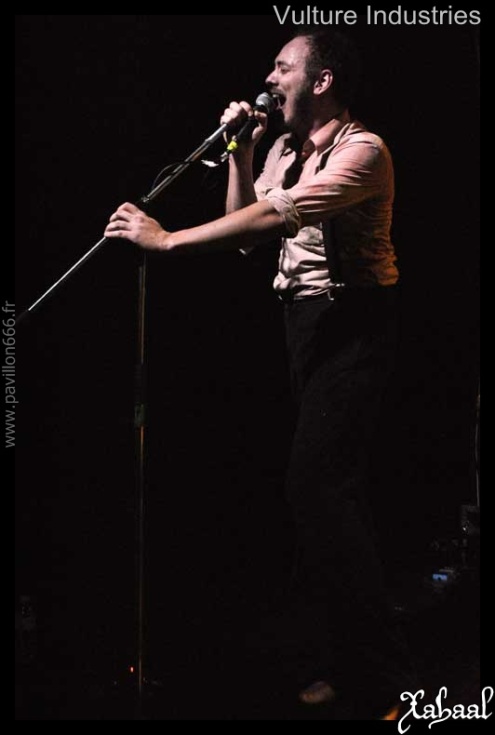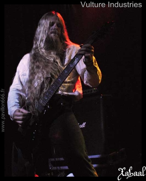 Restons dans la touche expérimentale, voir même avant-gardiste, avec VULTURE INDUSTRIES. Le groupe aura ce soir son lot de fans, et l’ambiance commencera à monter. Nous présentant un metal très avant-gardiste au diverses influences, marqué par la folie d’un Bjørnar E. Nilsen en pleine forme. Sourires de psychopathes et démarche robotisé. Le spectacle en valait la chandelle, le groupe aura réussi à nous emmener dans leur univers déjanté, à la fois fou, grandiose et malsain. Il se passe quelque chose de pas très clair mais personne n’est en mesure de dire quoi. Une bonne découverte pour certains, un moment attendu pour d’autres. Les blackeux pur et dur seront dehors, les gens à l’esprit un peu plus ouverts seront restés pour assister à un show différent, inhabituel et tout aussi inquiétant voir plus, qu’un show de black metal. Un grand bravo au groupe qui nous aura fait voyager l’espace d’un instant dans leur esprit malade.