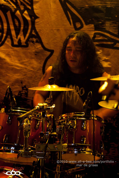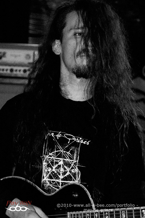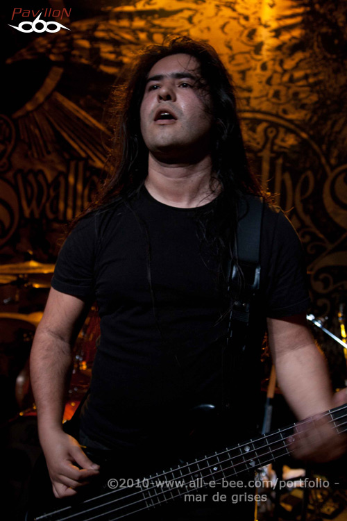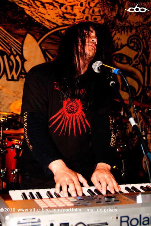 Entrée plutôt fébrile donc pour cette soirée au Korigan avec quelques courageux qui pénètrent dans la petite salle, toujours aussi mal éclairée et qui donne toujours autant de fil à retordre aux journalistes photographes. Défaut de lumières qui terniront quelque peu les prestations de ce soir puisqu’à part couper les lumières ou mettre une lumière jaune et une lumière rouge, c’est en gros tout ce que la salle nous offre par ces temps de crise de l’énergie. Dommage. Le son est correct, malgré un léger retrait du chant sur Swallow the sun, passons. C’est donc au tour des chiliens de MAR DE GRISES, fraichement signés sur le devenu incontournable label marseillais SEASON OF MIST, d’ouvrir le bal avec un quatuor qui se démène pour imposer leur doom de très haute facture. Autant sur album c’est excellent, autant sur scène, on se délecte carrément avec des compos à la fois catchy/dark, puis doom, pour passer par des ambiances mélodiques voire mélancoliques. Le chanteur/claviériste crache sa verve, le bassiste fait un peu le show à travers la petite scène. Précision, total investissement, le groupe délivre un set vraiment réussi et qui convaincra une salle qui se remplira au fil des heures.