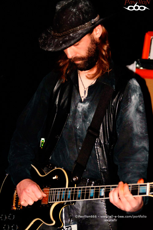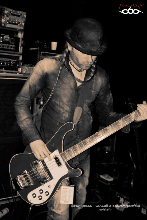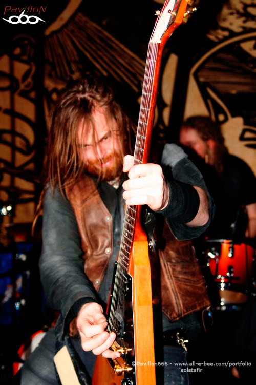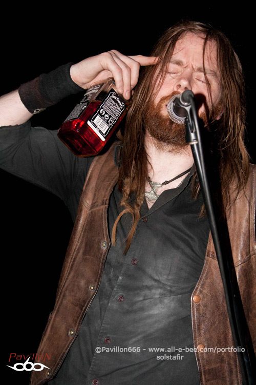 Viennent alors les islandais de SOLSTAFIR, avec un univers toujours très dark/pagan, mais avec des particularités psychédéliques face aux autres groupes du même style, avec notamment un effet dans le micro qui donne une profondeur et une certaine émotion sur chaque titre. Habillés à la Fields of nephilim, les musiciens restent assez statiques, et c’est le chanteur/guitariste qui prendra de nombreuses poses et assurera le spectacle. Entre dark/doom/pagan et psyché, le set variera sans cesse et on se projette alors sur les terre nordique sans aucun problème, transportés par des compos qui font mouche à chaque fois. Mélodieux, captivant, c’est assurément la découverte et la surprise de la soirée pour ma part. Aðalbjörn Tryggvason remettra une couche de spectacle avec un « mediator laser de l’espace », qui saturera sa guitare à souhait, pour nous plonger dans les ténèbres, un show vraiment plaisant, pour ne pas dire excellent - et ce malgré l’alcool absorbé !