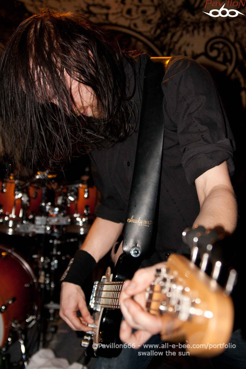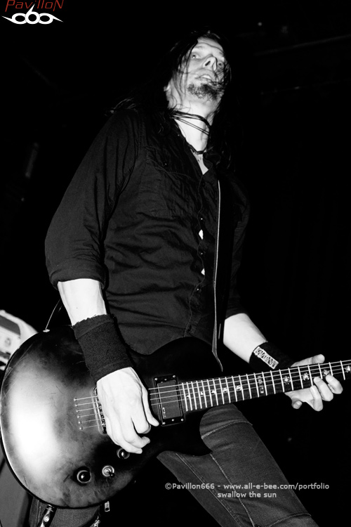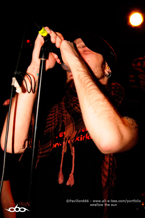 Swallow the sun arrive alors avec son chanteur orné d’une casquette/bonnet et écharpe, un peu façon hardcore et qui sera la déception de la soirée car très peu volubile et peu communicatif. Certes, caser six musiciens dans 10 m2 relève de l’exploit, mais tout de même. Mikko Kotamäki varie son chant entre dark/death et black, mais soit l’angine était de la partie ou un problème de son au micro, bref, il était décidément très en retrait ce soir. Seul le synthé fera des siennes avec une certaine démence dans sa façon de jouer, peut-être était-il possédé ce soir. Tous les autres musiciens assurent et proposent un set carré, prenant et sans faille aucune, mention au batteur et au bassiste impressionnant Matti Honkonen qui se sera dépensé sans compter. Leur dernier album « new moon » est à l’honneur se soir et on se régale de tous ces titres ; le groupe en fin de partie attendant que l’on hurle son nom pour revenir sur les planches, mais voyant que le public était – comme souvent à Marseille – de marbre, se résigne à revenir jouer quelques titres, pour s’envoler ensuite vers Barcelone. Propre et efficace.