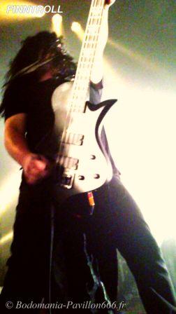 Avant de passer à la suite, le temps est venu de se rafraichir et de comptabiliser les spectateurs... Nous sommes 350 ce soir! Environ... Mais la pause est de courte durée car le changement de scène ne connait pas de retard lui, alors sans tarder, retournons dans la salle afin d'accueillir les francophones de la soirée. Une deuxième formation expérimentée nous attend donc. Tout droit venu de Suisse, (enfin d'Espagne, ayant joués à Madrid la veille), une nouvelle direction musicale s'avance. Le Black Metal teinté d'Electro de SAMAEL aura connu plusieurs changements depuis leur toute première sortie "Worship Him". Et pourtant, Vorph nous annonce d'ores et déjà une petite rétrospective sur leur belle carrière, avec une setlist très variée. Le frontman nous fait également part de sa joie de revenir jouer à Bordeaux après tant d'années. Les choses commencent bien, mais le public pour la plupart venu pour FINNTROLL, n'est pourtant pas plus réceptif que ça. Seulement, il est impossible de comparer ces deux têtes d'affiche tant elles sont différentes, alors aucun combat n'aura lieu.