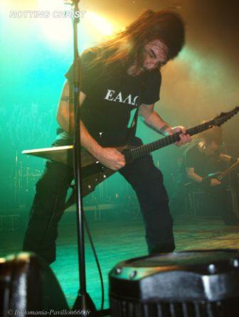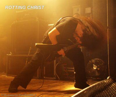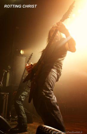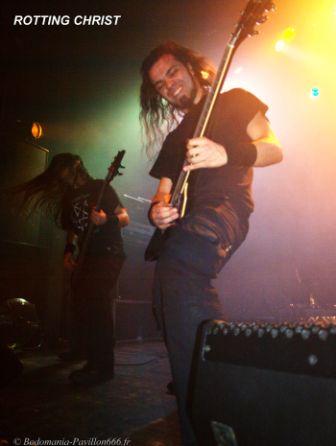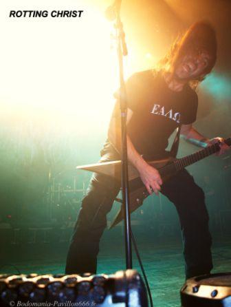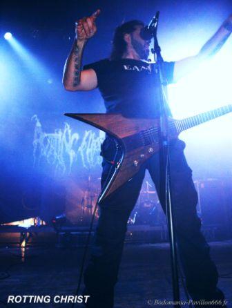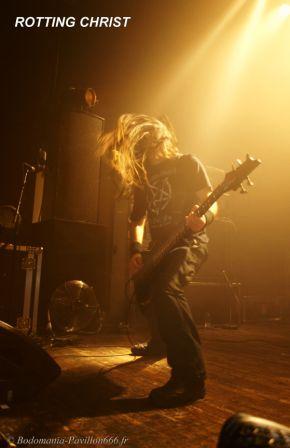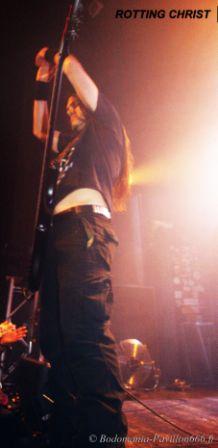 Après une courte attente, un changement d'ambiance va vite s'imposer. Les grecs de ROTTING CHRIST jouent un tout autre registre, cependant, l'évolution musicale apportée par ces derniers aura des répercutions très rapides et même des vertus thérapeutiques. Alors pourquoi s'en priver? A peine entré, la température monte déjà d'un cran, de quoi réchauffer la salle et le public qui le compose, celui-ci bien refroidie par cette soirée hivernale. Avec plus de vingt ans de carrière derrière eux, l'expérience parle, et le combo va nous le prouver, car si leur dernière sortie "Aelo", paraissait déjà très efficace dans sa version studio, ce n'est rien à côté de ce qui nous attend.